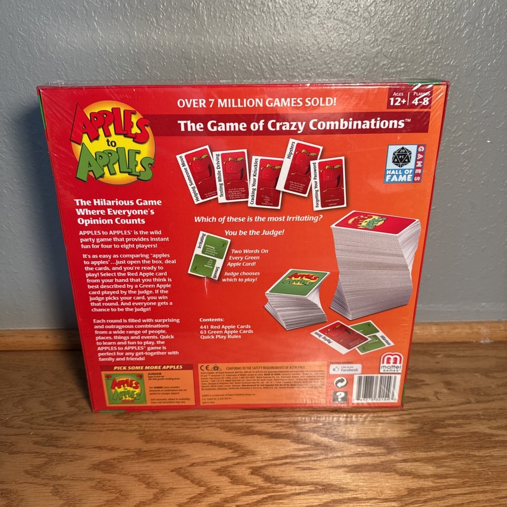 The "Mattel Apples to Apples Party in a Box" is a party game suitable for ages 12 and up. It includes cards and is designed for 4 or more players. The game encourages strategy and has won the Mensa Select Award. It is a fun activity for family and friends to enjoy together, featuring the Apples to Apples theme of comparing cards to match with different characteristics.
