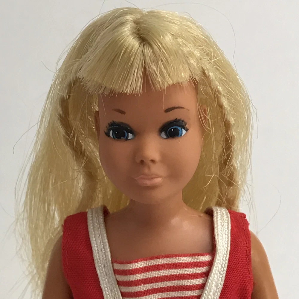 Mattel Barbie 1967 SKIPPER DOLL TWIST N TURN Blue Eyes Bendy Legs Wide Korea Nice condition. Stand not included. Please see all pictures for condition details.