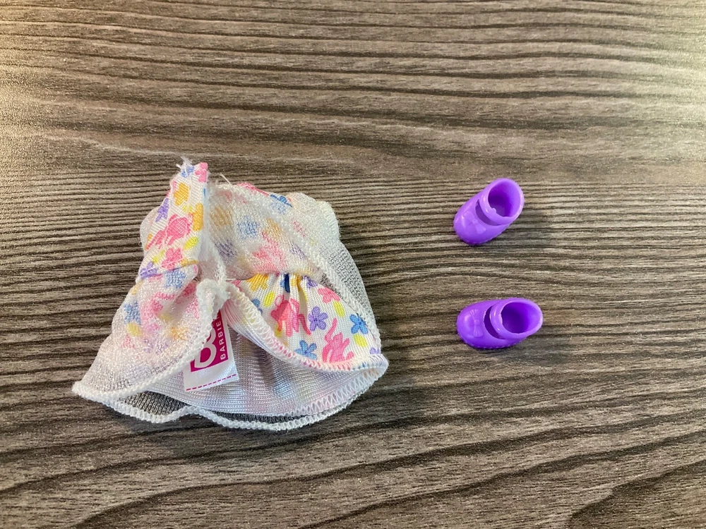 Kelly Doll Outfit This Kelly Clothes Set features A short sleeve white and multicolor flower print dress Dress has a pink “B” label A pair of shoes are included Set is in Nice Condition ***Please don’t hesitate to make an offer! *** ***Buy It Now :$ 4.50*** OR Best Offer ***Shipping: $ 4.75*** ***Happy to combine shipping for you*** *** Please let me know if you have any question, Happy to help in any way I Can*** ****Please , if you have the time check out my newly opened eBay store. I will be listing many Barbies, clothing, & accessories. As rims goes on I hope to add more fun collectible and vintage items. Like my store to see my newly listed items. Thanks so much!