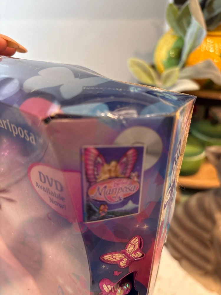 Note: although this Barbie is new and has never been out of the box, it was stored for many many years therefore, the Box has some damage and the plastic on top has lifted in a couple of places.Unveil the magic of imagination with the Mattel Barbie Mariposa Magic Wings Doll. Encased in its original, unopened packaging, this fashion doll is a limited edition collector's toy that promises to enchant fans of all ages. With its vibrant purple theme, this Barbie is an ideal gift for those who appreciate the fantasy in storytelling. The doll features intricate details such as wavy, curly blonde hair, brown eyes, and a light complexion, capturing the essence of the beloved character. Made from quality materials including cloth, plastic, and vinyl, the Barbie is not only articulated for dynamic posing but also interactive, offering an immersive play experience. Whether for display or play, this doll is a wonderful addition to any collection.