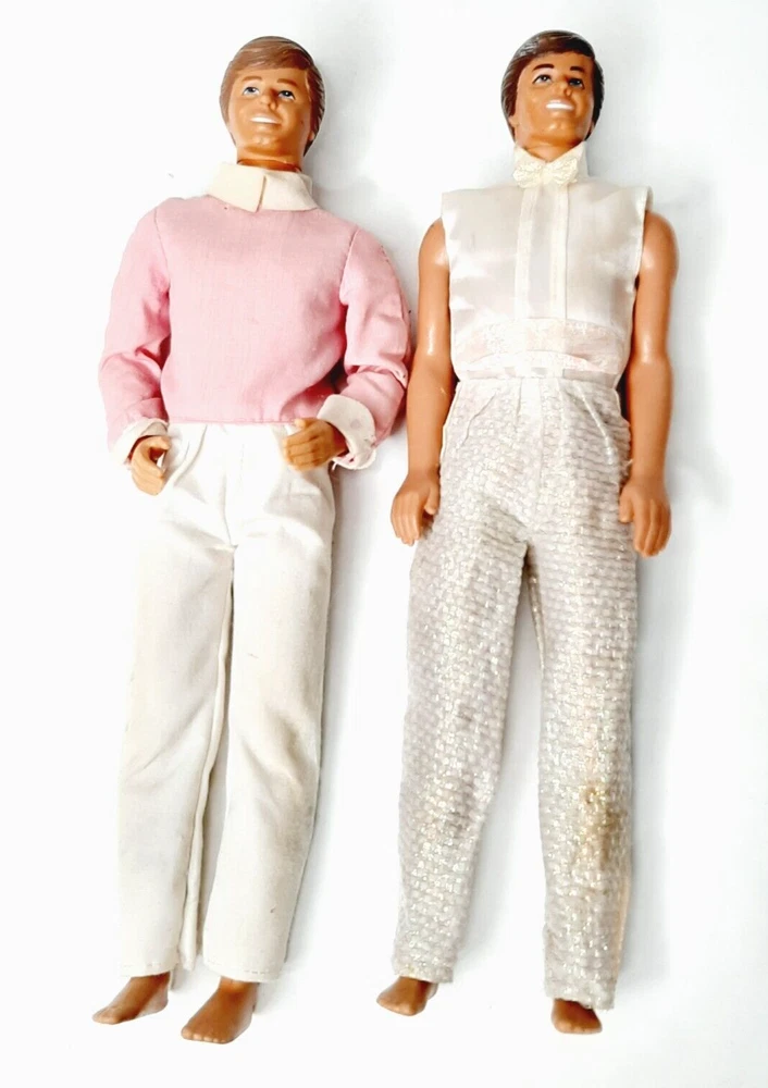 Mattel Crystal Ken & Day to Night Ken 2 Male Fashion Dolls Barbie's Boyfriends Good condition with minor wear due to use and age; Day to Night Ken has some paint missing on hair; clothes have some staining and minor damage
