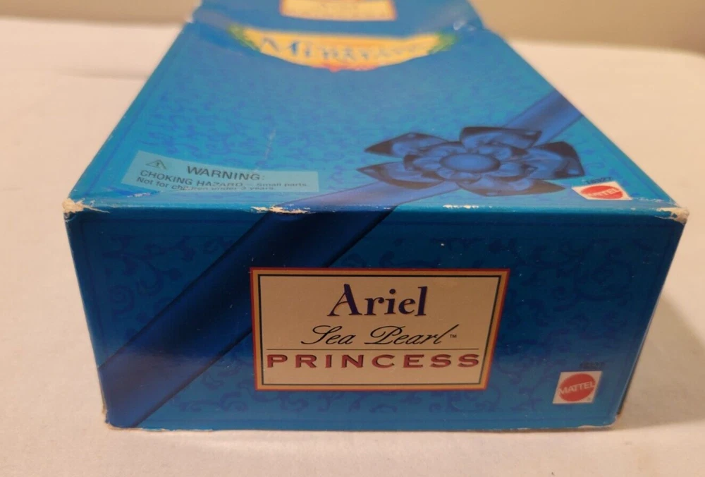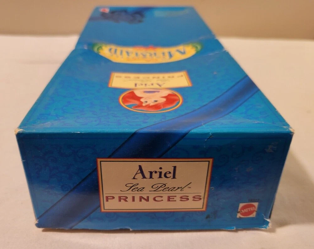This is a Mattel Disney The Little Mermaid Ariel Sea Pearl Princess 11" Doll from 1997. This collector toy is a timeless treasure with removable clothes and articulated features. The doll has wavy red hair, blue eyes, and a light complexion. It comes with accessories and is packaged in its original opened packaging. This Ariel Barbie doll is perfect for all occasions and is suitable for teens aged 4+. It is an original and licensed reproduction from Mattel's product line. The doll is made of plastic and was manufactured in China.