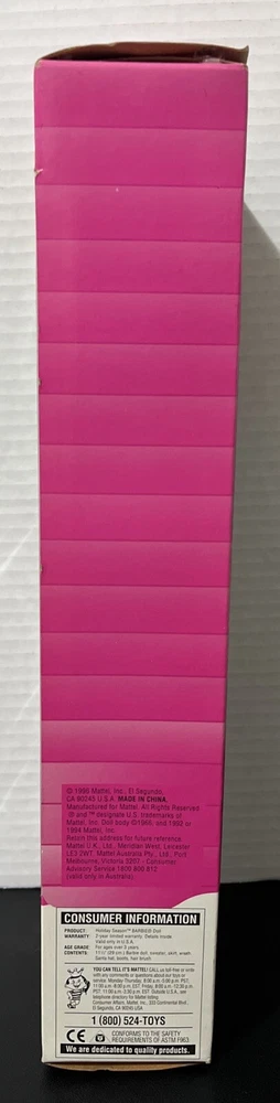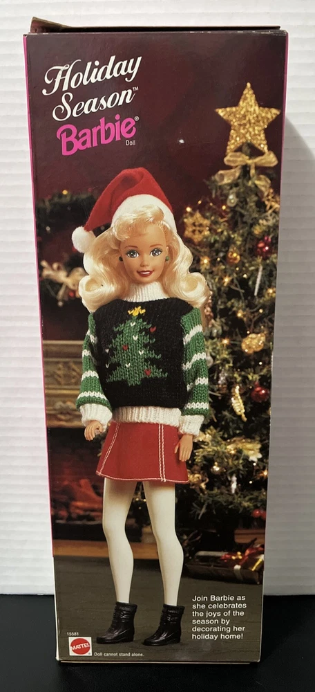 Vintage: No Year Manufactured: 1996 Character: Barbie Unit of Sale: Single Unit Features: Manufactured, Removable Clothes, Special Edition Doll Complexion: Light Item Weight: 9 oz Type: Fashion Doll Packaging: Original (Unopened) Brand: Mattel Antique: No Doll Hair Color: Blonde Franchise: Barbie Ethnicity: Caucasian Handmade: No Age Level: 3 Years & Up gtin13: 074299155819 Doll Gender: Girl Doll Personalize: No Doll Size: 11.5 in MPN: 15581 Item Width: 2.5 in Product Line: Holiday Barbie Number of Pieces: 7 Country/Region of Manufacture: China Signed: No Occasion: Christmas UPC: 074299155819 Time Period Manufactured: 1990-1999 Item Length: 4.5 in Set Includes: Doll, Doll Accessories, Hair Brush, Hat, Outfit, Shoes Doll Age Group: Adult Original/Licensed Reproduction: Original