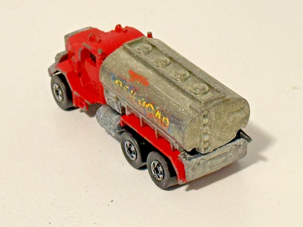 This Mattel Hot Wheels 1979 Peterbuilt Tanker is a must-have for any collector of construction tanker trucks. The orange color and black wall tires make this model a standout in any collection. The 1:64 scale and metal material make it a durable and realistic addition to any display. This Hot Wheels Hot Trucks model is from the California Construction series and was manufactured in Malaysia. It is suitable for both boys and girls and would make a great gift for any fan of construction vehicles. The vehicle year is 1979 and it features a Peterbilt vehicle make. Don't miss out on the opportunity to add this unique and iconic model to your collection.