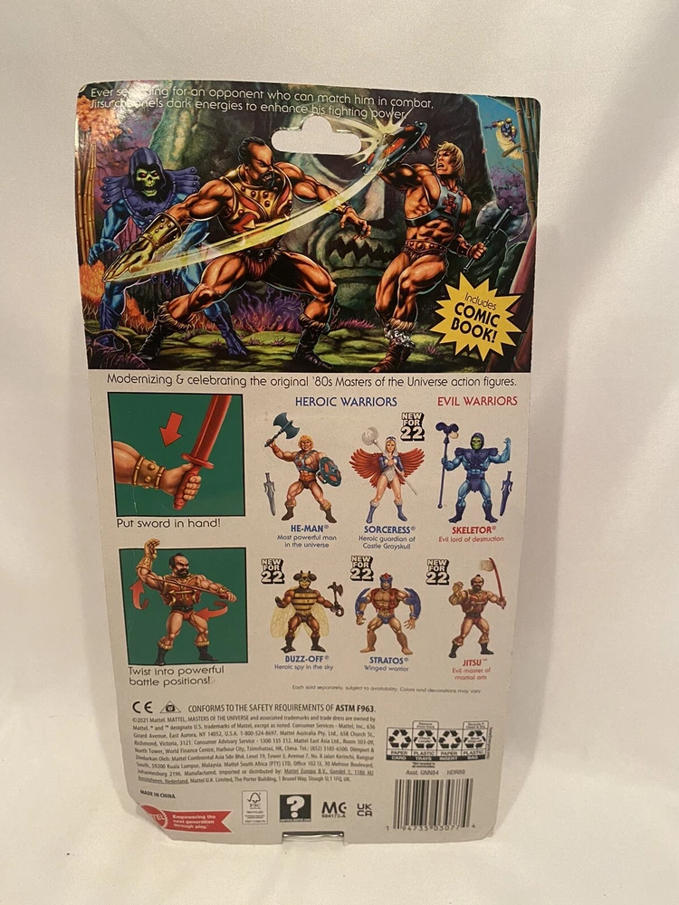 Introducing the limited edition Mattel Masters of the Universe Origins Jitsu Action Figure, perfect for fans of the iconic TV show. This 1:12 scale figure features intricate details and comes in a collector's box. The figure is made of high-quality plastic and stands at 7 inches tall. The Jitsu Action Figure is part of the Universe series and is an original, licensed reproduction by Mattel. It features an adjustable design and is based on the popular character from the Masters of the Universe franchise. This item is a must-have for any fan or collector and is sure to be a standout addition to any collection.