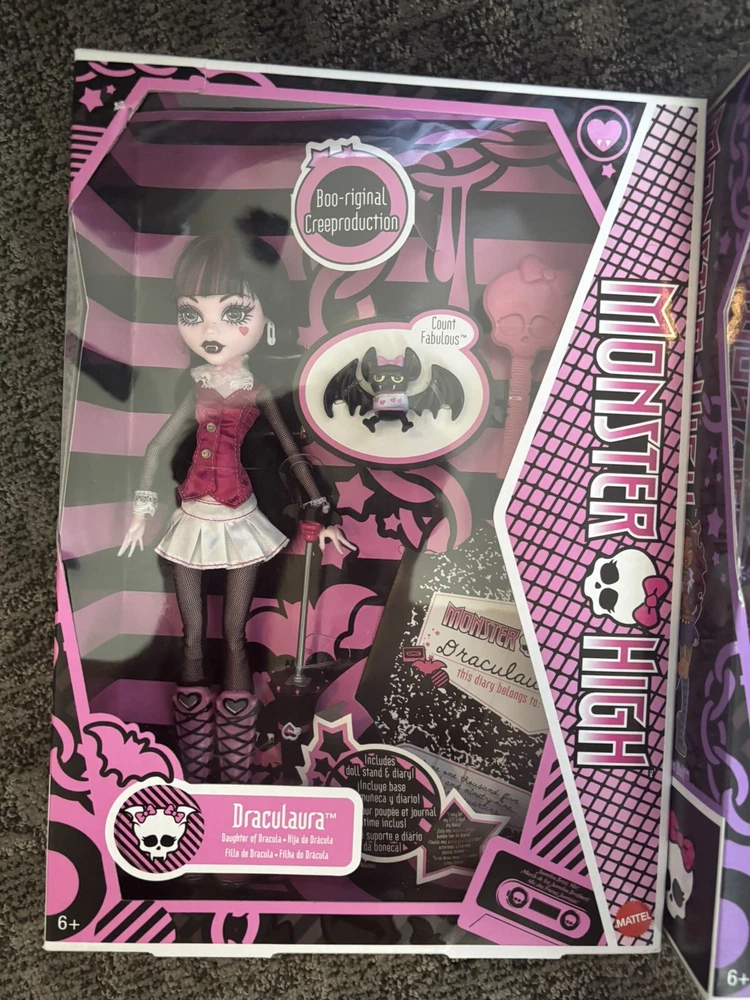 Year Manufactured: 2024 Character: Draculaura Type: Fashion Doll Unit of Sale: Single Unit Franchise: Monster High Doll Hair Color: Varies Number of Pieces: 1 Vintage: No Packaging: Original (Unopened) Set Includes: Doll Time Period Manufactured: 2020-Now Brand: Mattel Theme: Gothic & Horror Original/Licensed Reproduction: Licensed Reproduction
