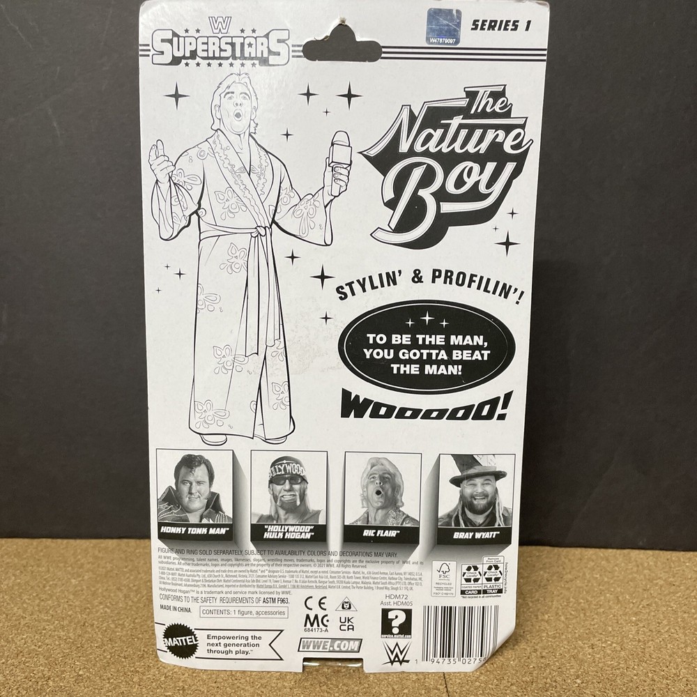 Get ready to add this amazing WWE Superstars Nature Boy Ric Flair Series 1 Mattel 5" Retro action figure to your collection. This collector's edition figure comes with clothes and a boxed packaging, making it the perfect addition for fans of all ages. With a scale of 1:12 and made from high-quality ABS plastic and plastic materials, this figure is a must-have for any wrestling enthusiast. Featuring Ric Flair, one of the most iconic WWE Superstars of all time, this figure is an original 1st edition and is recommended for ages 8 and up. The multicolor design and intricate details make this figure a great addition to any display or collection. Don't miss out on the chance to own this amazing piece of WWE Retro Superstars history.