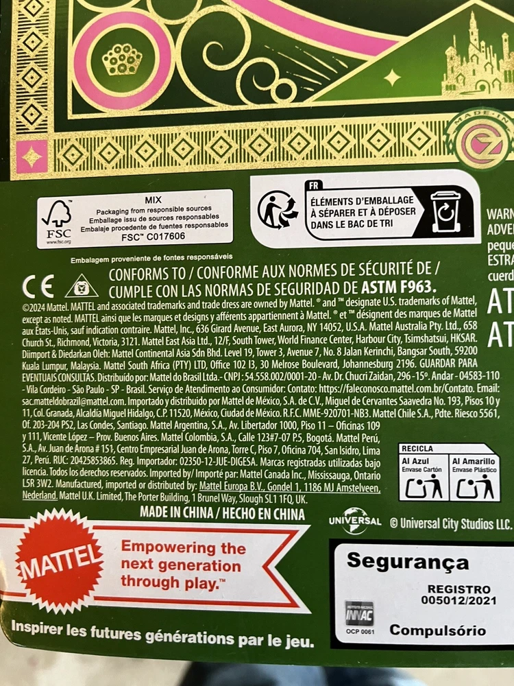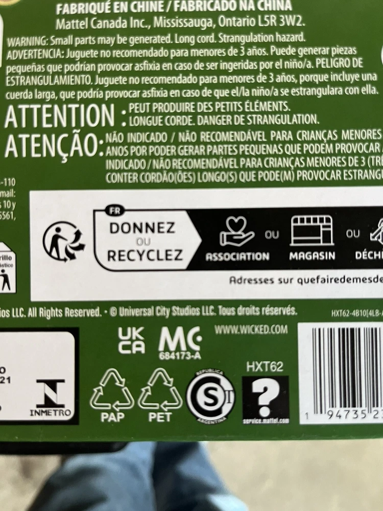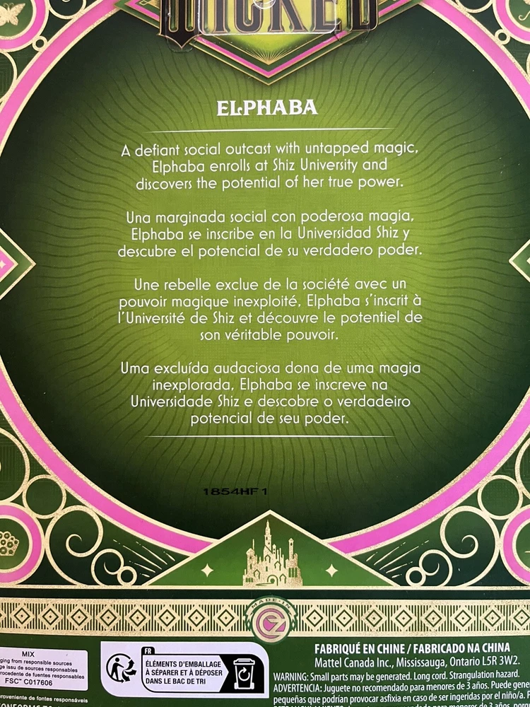 Mattel Wicked Movie Elphaba Fashion Doll URL Error Misprint In Hand Barbie Toy