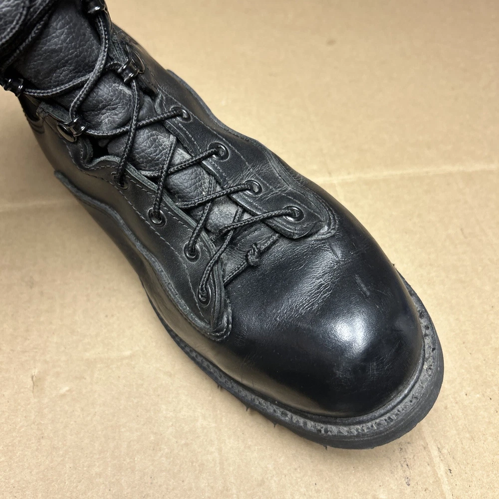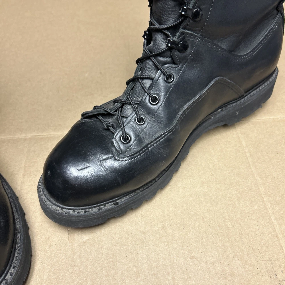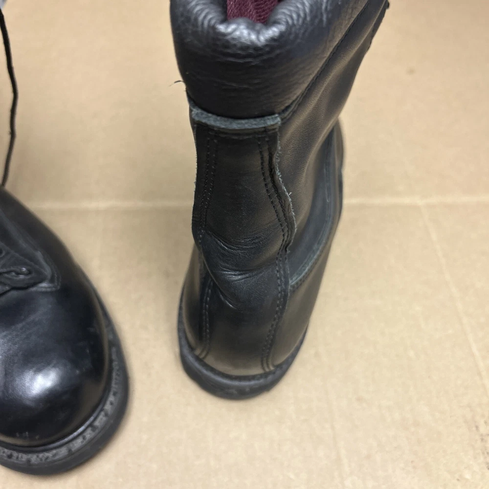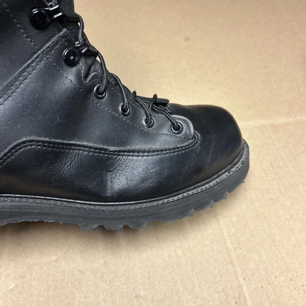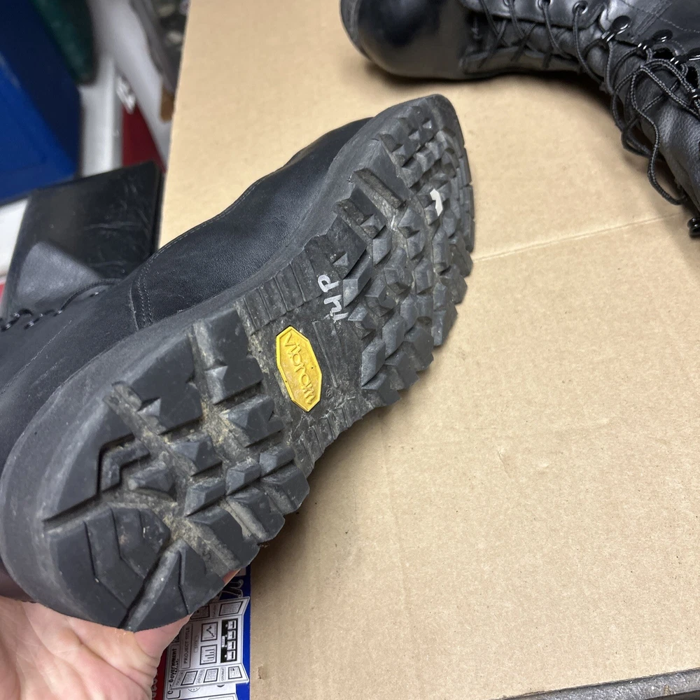 The boots have some marks and signs of wear to them. The laces have some wear to them. There is some indentation in some places. See pictures to see the item.