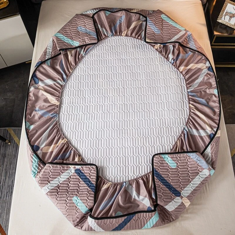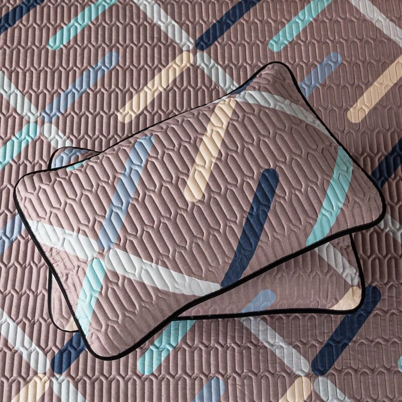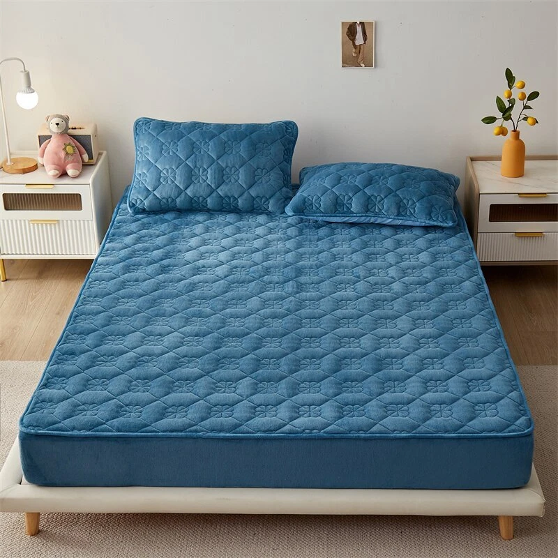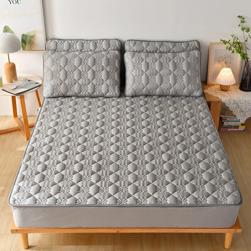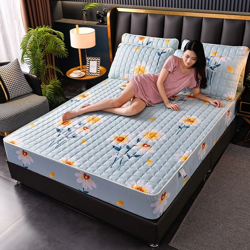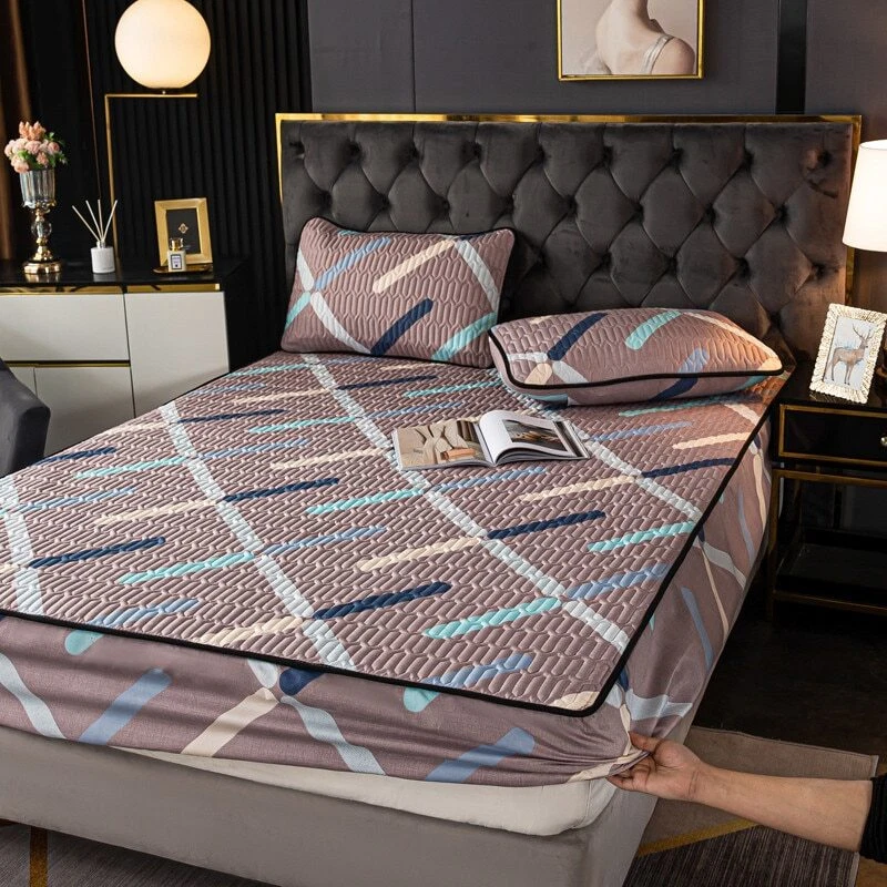 Mattress Cover Quilted Fitted Bed Sheet Printed Non-slip Sheet +2pcs Pillowcases