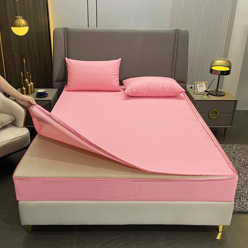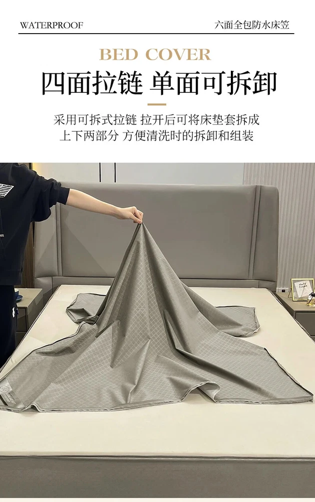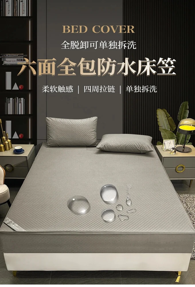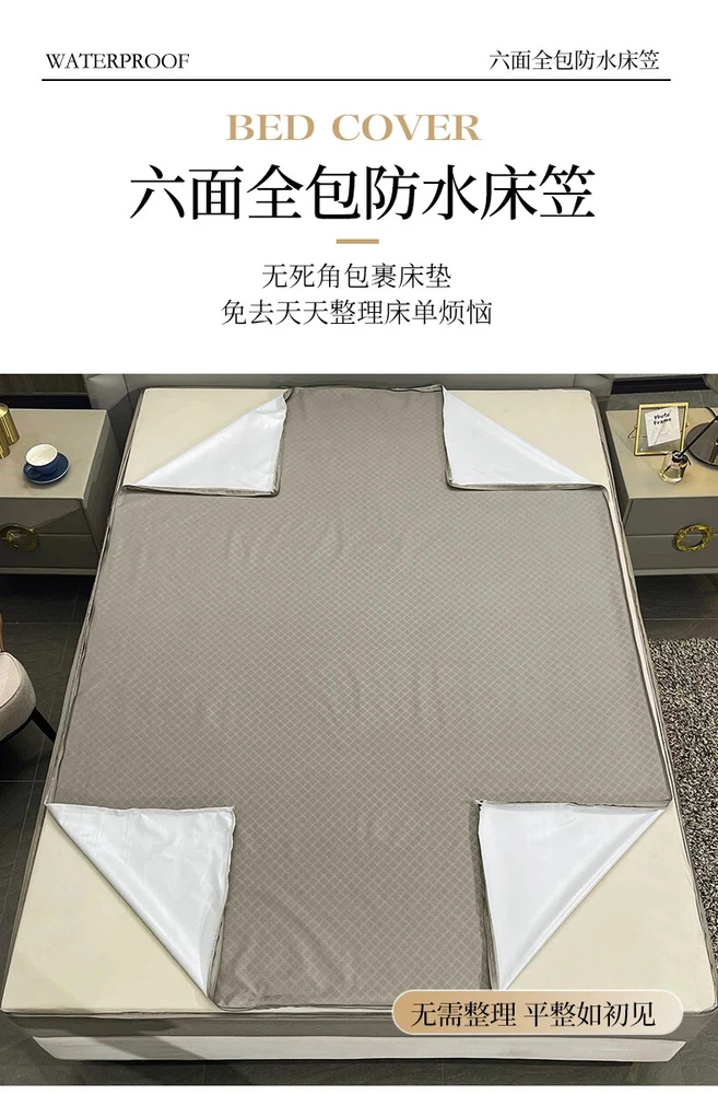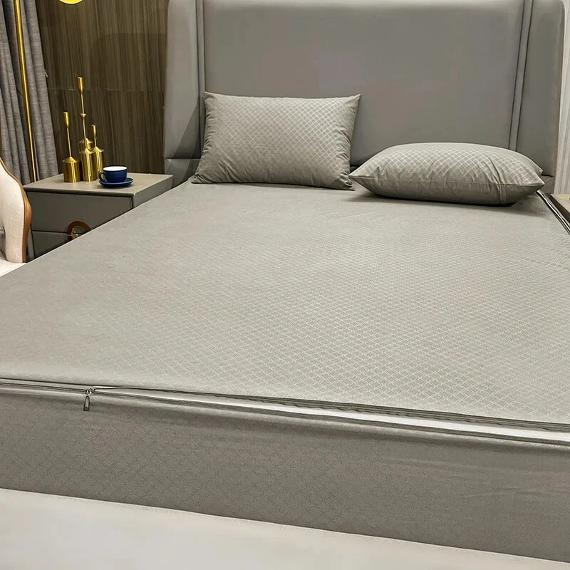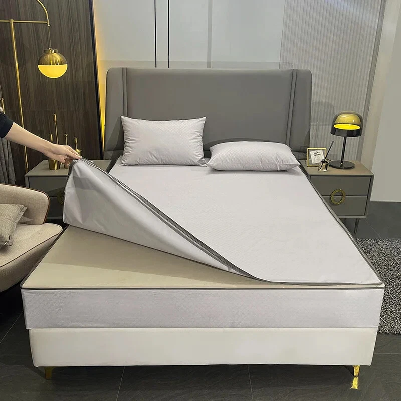 Mattress Cover with Zipper Six Sides Mattress Protector Anti-mite Fitted Sheet