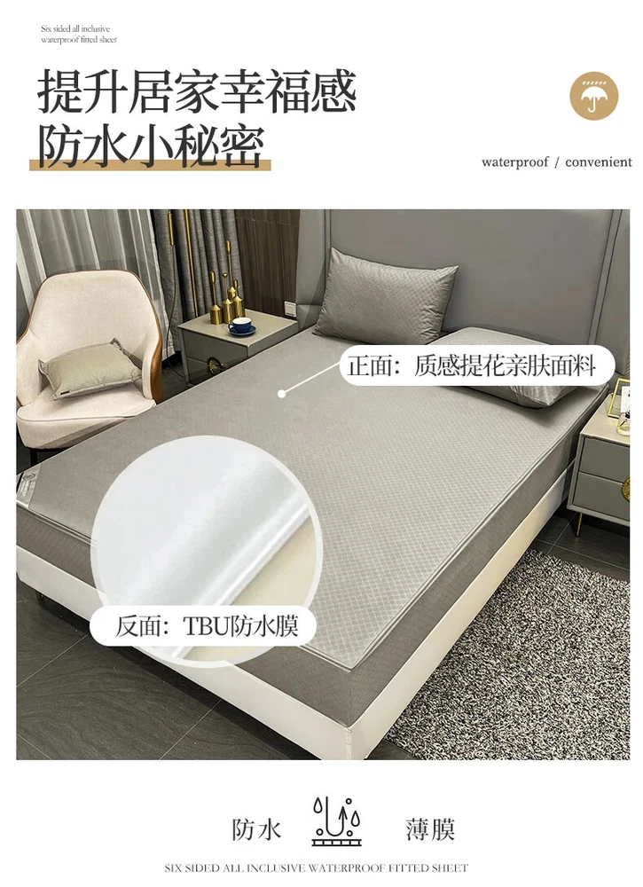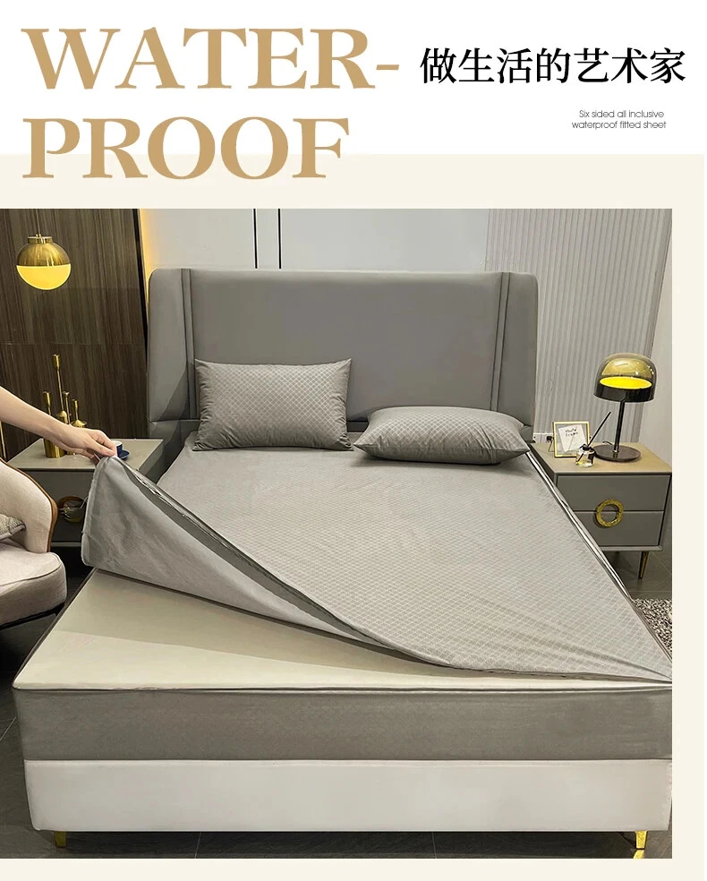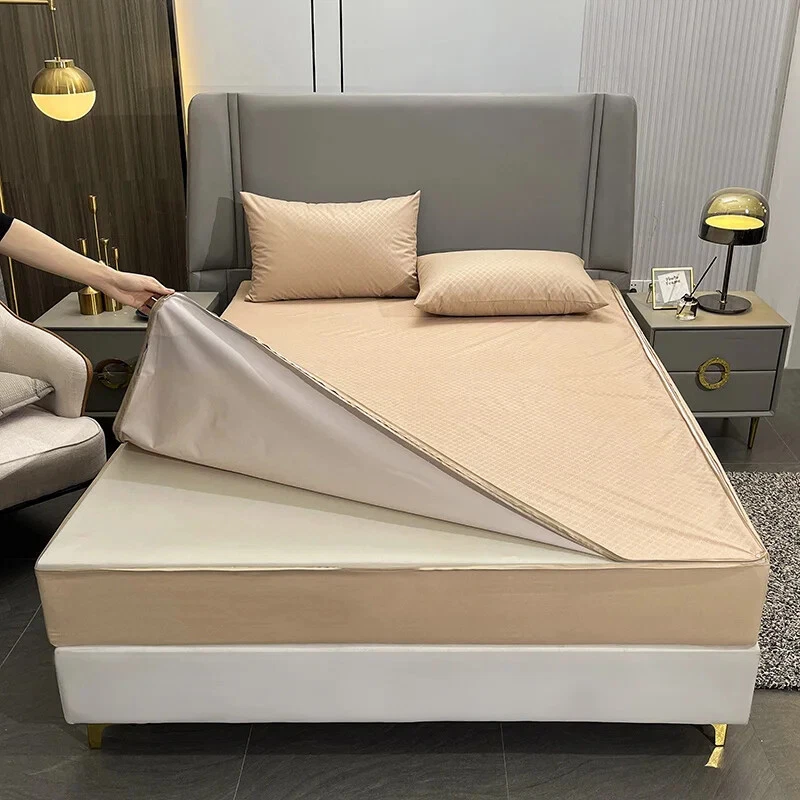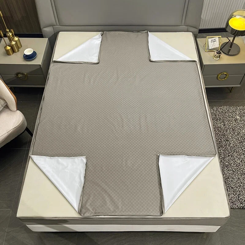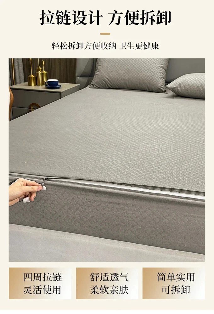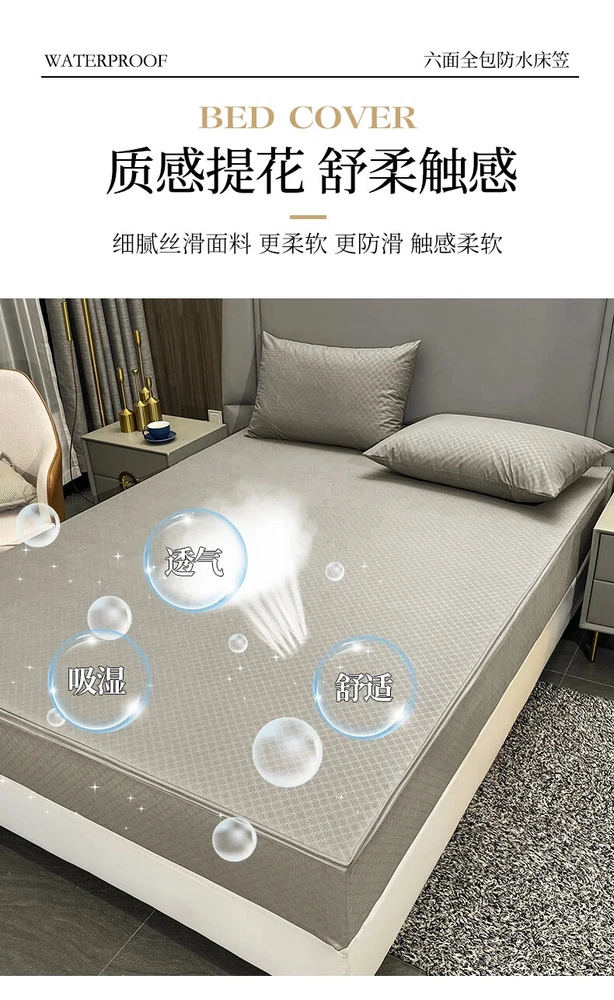 Mattress Cover with Zipper Six Sides Mattress Protector Anti-mite Fitted Sheet