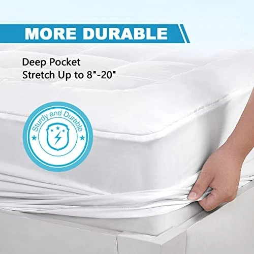 Return Policy Fast Delivery Trusted seller Queen Mattress Pad Cover Cooling Mattress Topper Pillow Top with Down Alternative Fill (8-21” Fitted Deep Pocket Queen Size) White Product Description Comfortable and Soft:Filled with 4D down alternative,gives superior comfort against your skin without extra heat and sweat.The down alternative filling has the feel of authentic goose and down,which is more comfortable and soft. Fluffy and Supportive:The optimum thickness of our mattress pads provide a perfect balance between softness and support.The Skin-friendly top cover improves the texture of the bed and the quality of a luxurious night's sleep effectively. Cooling and Breathable:The top layer of mattress topper is made of premium ultra-soft,fresh and breathable microfiber,which could keep your skin cozy and cool.The premium down alternative filling improves airflow and dissipates heat, making it extremely comfortable and soft.The fluffy topper provides an extra layer of softness for enhanced sleep. Convenient:Our bed topper is equipped with a 360°all-around elastic skirt,4 no-slip elastic anchor bands wrapping the mattress tightly.The deep pockets perfectly fits and grips any mattress up to 21". Machine Washable:Our mattress topper is MACHINE WASHABLE.Tumble dry it on low heat before use to fluff it up. Shipping Returns Payment Shipping Shipping is FREE to all addresses other than APO/PO boxes in the lower 48 states. All our stock ships from US-based warehouses. Shipped via USPS or UPS (depending on location and package weight) Unless stated otherwise, all orders will ship within 24-72 hours of your payment being processed. Check our feedback to see the great reviews of FAST shipping we offer. Returns Seller does not accept returns Payment We currently accept payment via eBay managed payments only. Once payment is cleared, we will dispatch your shipment within 1-3 business days. Please refer to the "Shipping" tab for more information regarding shipping speed to your destination.