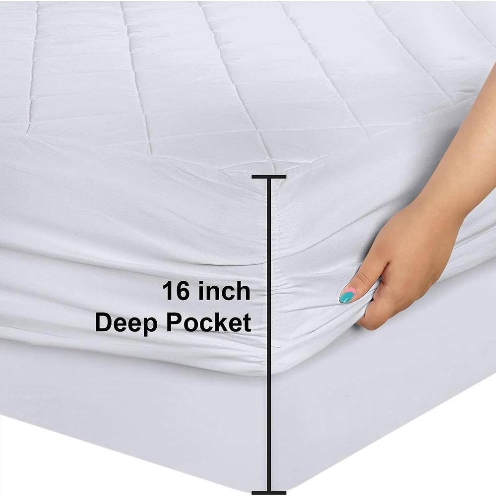 Mattress Pad Microfiber Fitted Topper Bed Protector Cover Pillow Top Washable Mattress Pad Description: Enhance your sleeping experience with this amazing Microfiber Mattress Pad. Providing ultimate comfort and protection, this Mattress Pad is designed with deep fitted, quilted features that ensure a cozy and relaxing sleep. Its machine washable feature ensures hassle-free cleaning and maintenance, while its pillow top design adds an extra layer of softness to your bed. Perfect for your bedroom, this Mattress Pad is a must-have for anyone seeking a luxurious and peaceful sleep. Mattress Pad Features: Microfiber MATTRESS PAD - The skirt fits to 16-inch deep mattress; for best results please protect the cover as it is NOT WATERPROOF or SPILL PROOF DURABLE - Quilted mattress pad cover is durable and long lasting and is significant for keeping your mattress free of stains SOFT AND COMFORTABLE - This super soft quilt with fiberfill has additional loft that provides extra comfortable sleep and protection; the elastic all around secures the pad into position AN IDEAL CHOICE - This mattress pad is a perfect choice if you're considering a comfortable, soft, breathable and high quality mattress pad CARE INSTRUCTIONS - The cover is machine washable and you can tumble dry on low; do not bleach; easy maintenance; natural drying Shipping / Return Policies: Shipping Policies: We ship to the Lower 48 States only (Does NOT include Hawaii or Alaska) We cannot ship to PO Boxes/APO's We cannot combine shipping. No Local Pickup. All items will be shipped directly to you from our supplier within 1-3 business days. Most items are delivered within 3-5 business days, however, please allow 3-10 business days. All items are in stock when they are listed. Inventory is tracked and updated regularly. However, if demand exceeds our supply, we will give the customer the following options: Full refund. Have the item back ordered and shipped when it becomes available. We will offer other items in similar style and quality. Your bid / purchase of the item implies you agree to this policy. If you have a question about a product not otherwise answered in the item description, please contact us via messages first and allow us the opportunity to help you and be sure we have what you're looking for. Exchange/Return Policy: Your satisfaction is guaranteed! If for any reason you are unhappy with your item, just return it within 30 days for a full refund, minus shipping cost. Please contact us prior to initiating a return so that we can issue you a refund authorization. Click "Buy Now" or "Add To Cart" to get this Mattress Pad now.