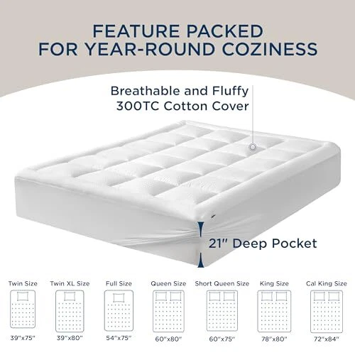 Return Policy Fast Delivery Trusted seller Mattress Pad Queen Size - Breathable Cotton Mattress Topper, Quilted Fitted Mattress Cover with Deep Pocket Fits 8-21 Inch Mattress, Soft Fluffy Pillow Top, White Product Description Sleep on a Cloud: This queen mattress pad (60x80 Inches) is filled with 450 GSM polyester microfiber material to preserve your mattress's lifespan, ensure enhanced pillowy comfort, and transform your mattress into a cloud-like sleep space. Featuring 's signature polyester microfiber material filling blend for extra softness and optimal support. Breathable & Moisture-Wicking: The 100% cotton fabric cover offers natural breathability and moisture-wicking properties, making it perfect for warm days while providing an incredibly soft touch. Optimal Comfort: This mattress pad features a cloud-shaped quilted design to provide evenly distributed support that disperses the body’s pressure. All designed for a restorative night’s sleep. Deep Pocket: This queen size mattress cover can be easily stretched up to 21". The all-around elastic edging effortlessly secures the mattress pad in place without moving or shifting. Easy Care: This queen size mattress pad is neatly stitched for improved durability to withstand wear and tear. Machine wash separately in cold water on a gentle cycle and tumble dry low. Shipping Returns Payment Shipping Shipping is FREE to all addresses other than APO/PO boxes in the lower 48 states. All our stock ships from US-based warehouses. Shipped via USPS or UPS (depending on location and package weight) Unless stated otherwise, all orders will ship within 24-72 hours of your payment being processed. Check our feedback to see the great reviews of FAST shipping we offer. Returns Seller does not accept returns Payment We currently accept payment via eBay managed payments only. Once payment is cleared, we will dispatch your shipment within 1-3 business days. Please refer to the "Shipping" tab for more information regarding shipping speed to your destination.