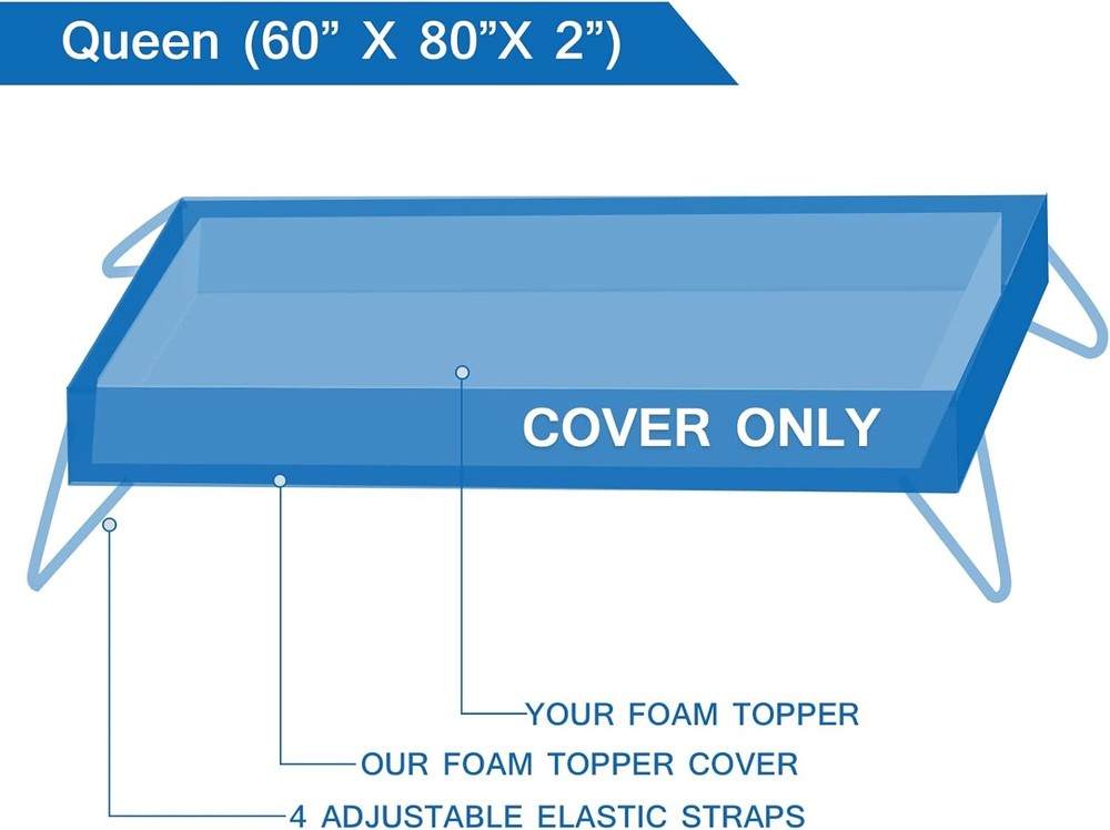 Mattress Topper Cover Queen Size (Only Cover) 3 Inch Queen, White Product Details Brand: Coldwind Color: White Size: Queen Fabric Type: 60% Polyester, 40% Viscose Derived from Bamboo Special Feature: Cooling Closure Type: Zipper Product Care Instructions: Machine Wash Water Resistance Level: Not Water Resistant Age Range (Description): Adult Material: 60% Polyester, 40% Viscose Derived from Bamboo Manufacturer: Coldwind Product Dimensions: 80 x 60 x 3 inches Item Weight: 4.13 pounds 60% Polyester, 40% Rayon Made from Bamboo Cooling mattress topper cover viscose made from bamboo air fabric(cover only, not include foam mattress topper.): Bring you a skin-friendly and breathable great feeling. 3D mesh fabric backing ventilated hole design keep the topper stay in place effectively throughout the night. Our unique design is both beautiful and elegant to bring you the very best sleep. Also, this mattress topper cover could refresh your old mattress topper to brand new with less expense. Various Size Mattress Topper Cover: To meet the difference needs,we provide 4 sizes for different mattress topper: Twin (39” X 75”), Full (54” X 75”), Queen(60” X 80”), King(76” X 80”), Twin XL (39” X 80”), Full XL(54” X 80”), you could choose the most suitable size for your mattress. Removable and Machine Washable: Cover for Latex mattress topper comes with a viscose made from bamboo on the top, which is easy to take off and machine washable, no need special treatment, save your time on cleaning it. Smooth YKK Zipper & Adjustable Straps: This mattress topper cover is attached with a high-quality YKK zipper. The encasement is equipped with mesh fabric backing and adjustable straps, keep the topper stay in place effectively throughout the night, say goodbye to adjust topper frequently. Imported