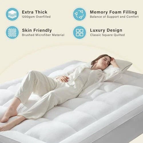 Return Policy Fast Delivery Trusted seller Mattress Topper Queen for Back Pain, Memory Foam Pillow Top Mattress Topper Queen, 5X Support Extra Thick Mattress Pad with 8-21" Deep Pocket, 60x80 Inches, White Product Description 【Upgrade Support】 Indulge in ultimate comfort with our pillow top mattress topper. It is crafted from a blend of 50% memory foam and 50% down alternative fiber, providing an optimal balance of softness and firm. 【Upgrade Thickness】The 1200gsm overfilled mattress topper for queen beds is thick enough to relieve back pain and reduce stress. 【Enhanced Comfort】Improve your sleep experience with this Oeko-Tex certified queen size mattress topper, and enjoy that face-to-face comfort. 【Deep Elastic Pocket】 The deep elastic pocket with a bed skirt comfortably fits mattresses up to 21 inches high, ensuring a secure fit that prevents the mattress pad from shifting or sliding. 【Easy Care and Maintenance】 Our memory foam mattress topper is machine washable for convenience and long-lasting freshness Shipping Returns Payment Shipping Shipping is FREE to all addresses other than APO/PO boxes in the lower 48 states. All our stock ships from US-based warehouses. Shipped via USPS or UPS (depending on location and package weight) Unless stated otherwise, all orders will ship within 24-72 hours of your payment being processed. Check our feedback to see the great reviews of FAST shipping we offer. Returns Seller does not accept returns Payment We currently accept payment via eBay managed payments only. Once payment is cleared, we will dispatch your shipment within 1-3 business days. Please refer to the "Shipping" tab for more information regarding shipping speed to your destination.