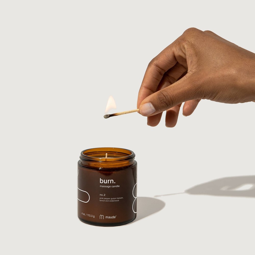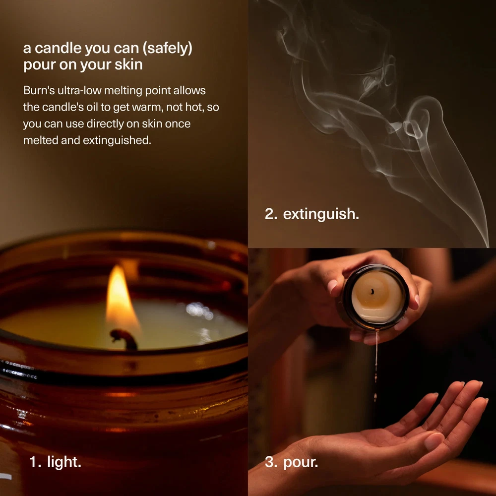 Blended with crisp notes of pink pepper, gurjun balsam, lemon, and cedarwood. Made with skin-softening jojoba and soybean oils, this hand-poured massage candle is made with 100% cotton, lead-free wick, and cruelty-free, vegan ingredients. Developed with a master scent house in Brooklyn, it can be poured on the skin once melted or simply used to infuse scent in the room. Contains soy. 4 oz. Cruelty-free, Phthalate-free Low burning temperature, Ultra-hydrating. Hand-poured. Manufactured in New York. Smells Like: (alpine moderne) 1972 in the Alps, all cedar and glass. Citrus cuts through the chill, while warm woods fill the air for whatever comes next. California lemon sparks like a sunlit morning, softened by the delicate bite of pink pepper. Virginian cedar steadies the blend, grounding it in polished wood and stillness, while Gurjun balsam lingers, soft and enveloping, like fresh sheets after a long retreat. Usage: Light: For best results, we recommend letting the candle burn for 10–15 minutes, or until the top level of oil pools evenly and there is still solid candle oil underneath. Extinguish: To extinguish your candle, gently blow out the flame and contain any smoke with the jar's lid. A wick snuffer works great, too. Never attempt to extinguish a candle using water. Pour: Once extinguished, carefully check the temperature of the glass container and oil. Pour and apply the massage oil. You can pour the oil directly onto skin, or apply with your fingertips and massage it in. The light and silky texture will moisturize and absorb into the skin, and can be reapplied as desired. Burn time: The candle's continuous burn time is approximately 12 hours in 2 oz. and 30 hours in 4 oz. We recommend burning the candle in 10–15 minute increments for optimal consistency. Ingredients: Hydrogenated Soybean Oil, Ricinus Communis (Castor) Seed Oil, Cetearyl Alcohol, Parfum (Fragrance), Lauryl Laurate, Hydrogenated Castor Oil, Olea Europaea (Olive) Fruit Oil, Beeswax (Cera Alba), Copernicia Cerifera (Carnauba) Wax, Euphorbia Cerifera (Candelilla) Wax, Simmondsia Chinensis (Jojoba) Seed Oil, Benzyl Alcohol, Citral, Hexyl Cinnamal, Hydroxycitronellal, Limonene, Linalool, Evernia Furfuracea (Treemoss) Extract.