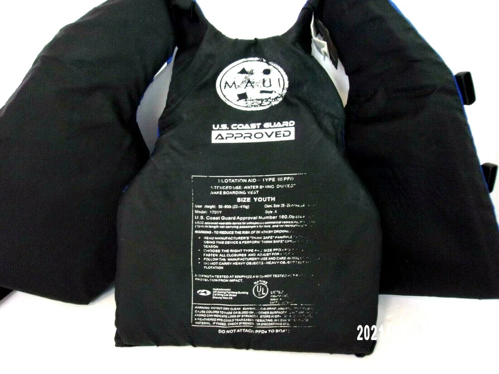 Maui And Sons Life Vest Jacket Boys Girls Size 25-29 Blue Black Youth Chest Please Read The Return Policy,Descriptions And 1 Day Handling Times Carefully Before Purchasing *** ATTENTION !!! My Best Offer Is Set At $3.00 To $10.00 Less Than The Fixed Price *** *** All Photo's Are Of The ACTUAL Item(S) That You Will Receive Guaranteed *** *** Ships From The U.S *** (1 Or Same Day Handling Time ) **PLEASE READ!! *** Saturday-Cut Off Handling Time Is 7 Pm Eastern Standard Time(Will Ship On Monday) Sunday - Cut Off Handling Time Is 7 PM Eastern Standard Time(Will Ship Next Day On Monday) Mon.-Fri. - Cut Off Handling Time Is 1 PM Eastern Standard Time(If Ordered After 1 PM Will Ship Next Day) *** If Order On A Major Holiday We Will Ship The Day When The Post Office Reopens *** *** Ships USPS Priority Mail Package Delivery (Bubble/Paper) *** (U.S) *** ShipsEbay International Standard Delivery (Bubble/Paper) *** ( International ) Item Description : Maui & Sons Life Vest Jacket For Boys Or Girls Blue/Black Chest Size 25-29 User Weight 50-90 LBS. **Be Sure To Inspect Your Item Immediately Upon Arrival Please Leave Positive Feedback If You Are Happy And Satisfied With your Purchase If By Any Chance That The Item Is Not As Described Please Contact Us So That We Can Fix It...Please Report The ERROR To Us. Condition- *** Pre-Owned *** Excellent Condition *Location : From A Smoke Free And Pet Free Home ! *Payment : ALL TRANSACTIONS MUST BE HANDLED THROUGH EBAY ONLY!! *Shipping : We Ship All Items 1 Or Same Business Day Of Payments Clearing (Including Weekends And Holidays) We Ship Worldwide * Return Policy:Please Read Carefully !! IF WE OFFER FREE RETURNS !!! We accept a return for any reason during 30 days after receiving the item Undamaged,in resalable condition and original package for a refund less ALL shipping costs plus restocking fee 10%. Items That are Broken,Taken Apart,Scratched from a smoking environment will not get a refund. Please be gentle with the item. We Provide you with Descriptions; If you need more information about the item ..Please don't hesitate to ASK ! We will be more than happy to help you to make the right purchase. HAPPY AND SATISFIED CUSTOMERS ARE OUR # 1 PRIORITY !!! ***** Contact Us ****** Please Feel Free To Contact Us With Any Questions About The Item Thank You For Stopping By And Have A Great Day!!