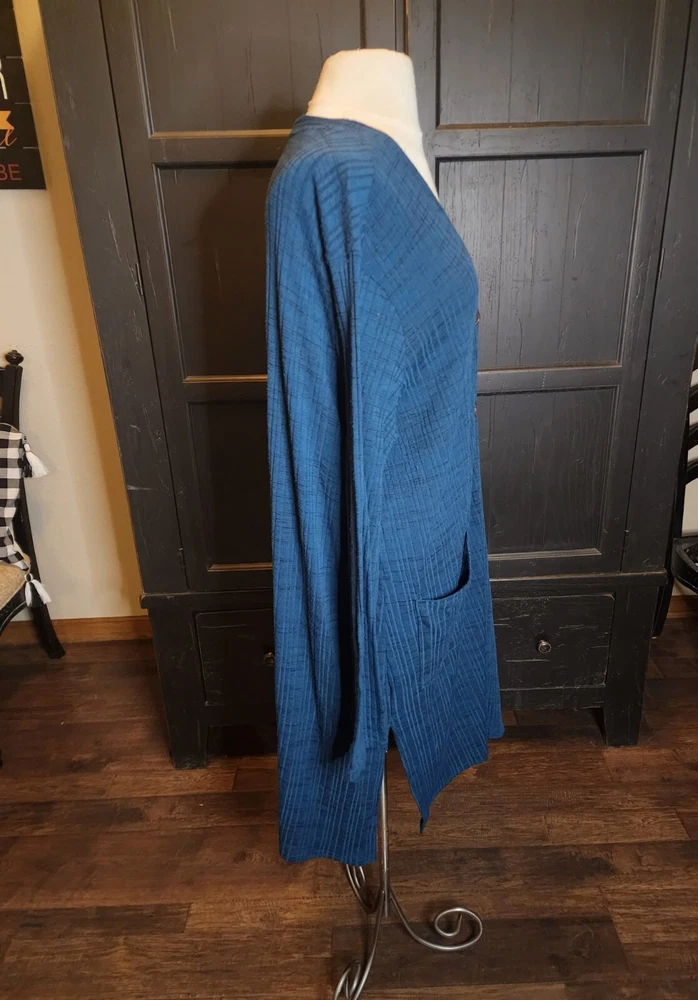 ❤️READ MEASUREMENTS FOR FIT ❤️ Maurices Button Front Long Dark Teal Cardigan Sweater Women's XL Pre-owned. Nice sweater in dark Teal with two front pockets 90% Polyester 6% Rayon 4% Spandex Machine washable. Laying flat sweater measures 25" from underarm to underarm, 18.5" from shoulder to shoulder, 38" from shoulder to hem, and sleeve measures 23.5". ALL MEASUREMENTS ARE APPROXIMATE Excellent Pre-owned Condition. ❤️READ MEASUREMENTS FOR FIT ❤️