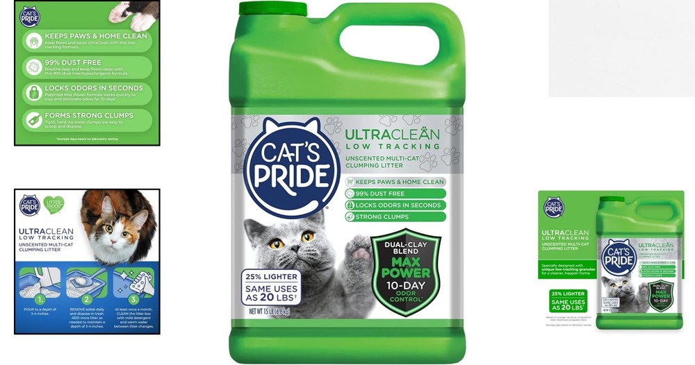 Max Power Low Tracking Cat Litter - 15lbs, For All Breeds, 10 Days Odor Control ‹ › ‹ › ‹ › ‹ › ‹ › ‹ › ‹ › ‹ › ‹ › Max Power Low Tracking Cat Litter - 15lbs For All Breeds – 10 Days Odor Control Features: Low-Tracking Granules: Specifically designed to keep your home and your cat's paws UltraClean. Max Power Formula: Patented dual-clay formula providing a powerful 10 days of odor control with strong clumping capability. 99% Dust Free: Enjoy a cleaner environment with nearly no dust during pouring and usage. 25% Lighter: Our flagship litter is lighter in weight for easier handling, pouring, and storage. For All Ages & Breeds: Suitable for cats of all ages and breeds while being cost-effective for pet owners. Litter for Good: One pound of litter is donated to animal welfare for each jug purchased, helping cats in need. Benefits: Keeps paws and home clean with innovative low-tracking technology. Goodbye odors – Say hello to freshness! Less weight means more convenience in your daily routine. Supports animal welfare – Feel great by contributing to a good cause. Why Choose Max Power Low Tracking Cat Litter? Are you searching for a litter that keeps your home fresh and your cat's paws clean? The Max Power Low Tracking Cat Litter is your ultimate solution! With our specially formulated low-tracking granules, you can enjoy a cleaner environment effortlessly. Offering 10 days of powerful odor control while remaining 99% dust free , this litter is not only effective but also easy to use. Additionally, lighter in weight, it allows for effortless management. Join us in our mission to support animal welfare with our Litter for Good initiative. Every purchase helps shelter cats find loving homes. Transform your cat's litter experience with Max Power today! Shipping Free & Fast Shipping - We offer free shipping to most of the USA with a normal delivery time of 3-7 days. However, due to the current situation, additional delivery time (up to 3 weeks) may be required for some items. Alternative Carriers - We may use alternative carriers (e.g. USPS, FedEx, UPS, etc.) to ensure your package arrives safely and on time. Due to the use of multiple carriers, we are unable to provide a tracking number automatically. Handling Time - Orders are processed and shipped within 1-2 business days of receiving cleared payment. Shipping Restrictions - Shipping to Alaska, Hawaii, Puerto Rico, Guam, and other US territories may incur shipping charges or delivery restrictions. Please contact us before ordering, or your order can be refunded/cancelled. State Restrictions - There may be restrictions based on your state of purchase. For example, certain items may not be shipped to California due to state regulations. Contact for Tracking Updates - If you require tracking updates or have any concerns about the delivery of your order, please feel free to contact us, and we will be happy to assist you. Return 30-Day Hassle-Free Returns - We want you to be completely satisfied with your purchase. If you are not, you can return the item within 30 days of receiving it for a full refund or exchange. Easy Return Process - To start a return, simply contact us and we will provide you with a prepaid return shipping label and detailed instructions. Restocking Fee - There are no restocking fees for returns. However, the buyer is responsible for return shipping costs if the return is not due to a seller's error. Refund Processing Time - Refunds will be processed within 5 business days of receiving the returned item in its condition. Payment We accept all major credit cards, PayPal, and Apple Pay for your convenience. Your payment information is secure and encrypted to ensure a safe and seamless transaction. Please complete your payment within 3 days of purchase to avoid any delays in shipping. Feedback Your feedback is extremely important to us. We strive to provide the best products and customer service possible. If you are satisfied with your purchase, please take a moment to leave us a positive review. If you have any concerns or issues with your order, please contact us before leaving negative feedback. We are committed to resolving any problems and ensuring your satisfaction. Contact Us If you have any questions or concerns, please feel free to out to our customer support team. You can contact us through the eBay messaging system. We are available Monday to Friday, 9:00 am to 5:00 pm EST, and we will do our best to respond to your inquiry within 24 hours. Buy it now and enjoy a pleasant shopping experience! Model: Cat Litter MPN: Cat_Litter Unit Quantity: 15 pounds Type: Clumping Litter
