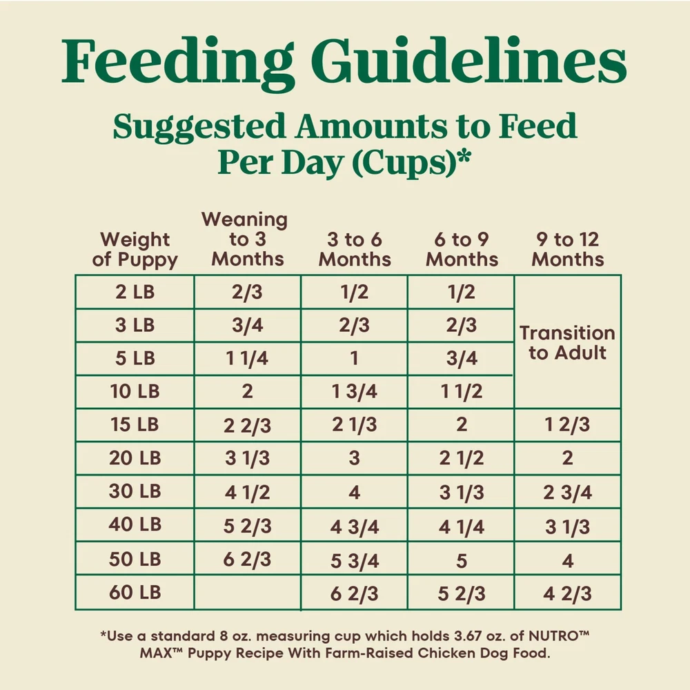 100% Complete and Balanced: This dry Puppy food recipe is 100% complete and balanced for puppies and contains a high-quality protein source as the #1 ingredient Quality Recipe: This dry dog food recipe is made with non-GMO ingredients; no chicken by-product meal, corn, wheat, or soy Supports Healthy Vitality: This dry Puppy food recipe supports healthy skin and coat, digestion, and immunity to help support your dog’s vitality Strong Muscles: Max Puppy Dry Dog Food with Farm-Raised Chicken contains high-quality protein sources to help support strong muscles Healthy Brain & Eye Development: This dry Puppy food recipe is crafted with DHA, an Omega-3 Fatty Acid, to help support brain and eye development