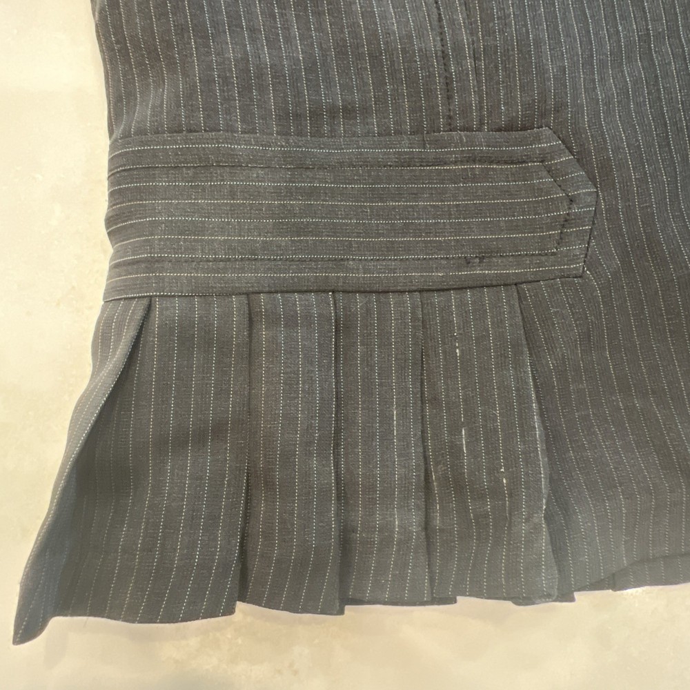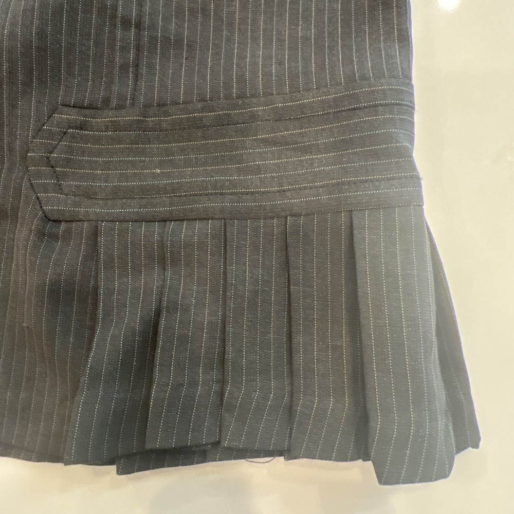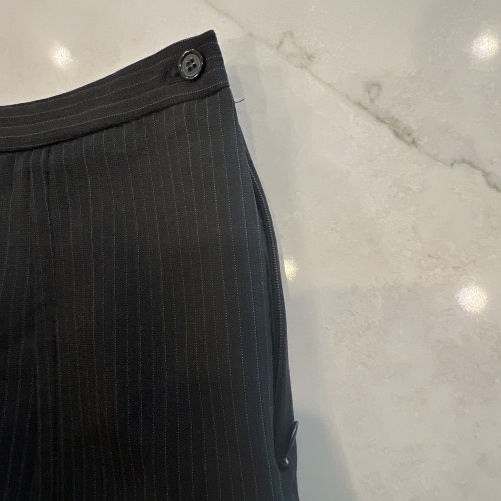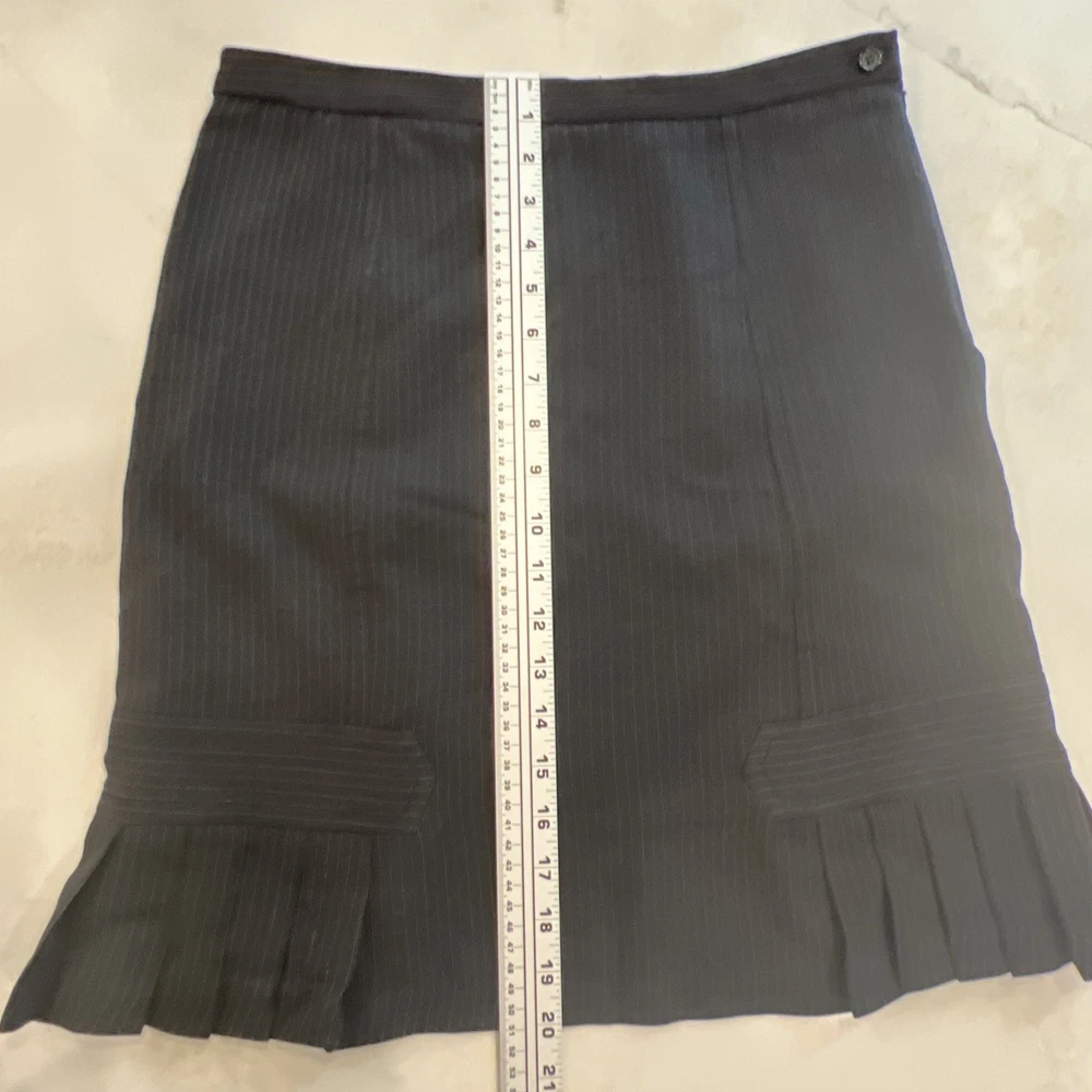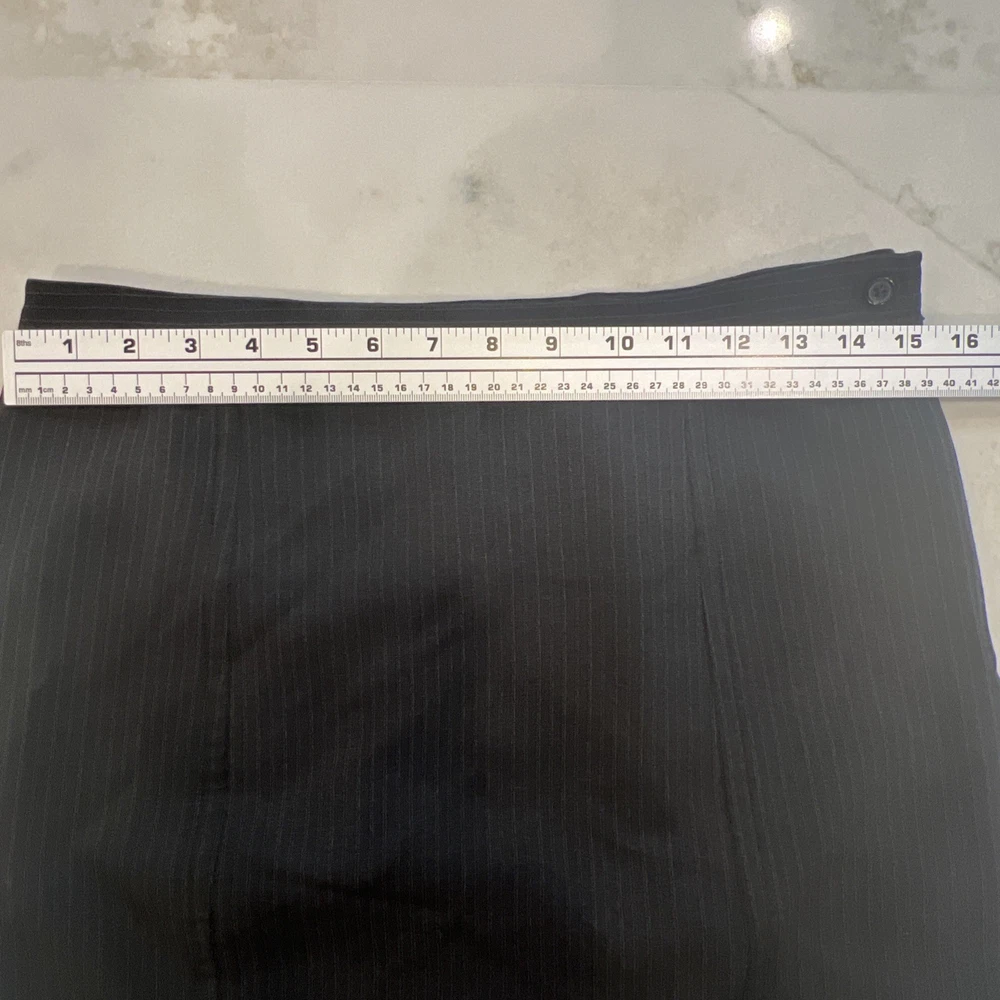 Chic and sophisticated, this Max Studio gray pinstripe skirt features tailored pleat detailing near the hem and a side zip with a button closure at the waistband. Ideal for office wear or professional settings, the skirt offers a polished, fitted silhouette with comfortable stretch. • Brand: Max Studio • Size: 6 • Color: Gray with white pinstripes • Style: Straight pencil skirt with pleated hem accents • Closure: Side zipper with button • Material: Shell – 94% Polyester, 4% Spandex, 1% Rayon, 1% Nylon | Lining – 100% Polyester • Condition: Excellent pre-owned condition. Please see all photos for full details and measurements. Ships fast from a smoke-free home! Please feel free to reach out with any questions.