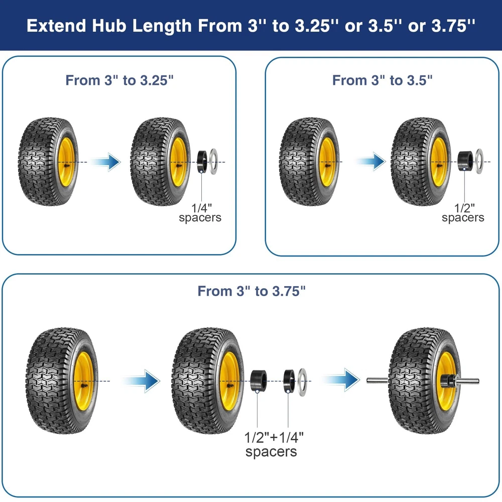 Color: Yellow Brand: MaxAuto gtin13: 0192840356161 Package Dimensions LxWxH: 16.5x16.5x14.25 Inches ISBN: 0192840356161 Weight: 30.3 Pounds Type: Does not apply EAN: 0192840356161 UPC: 192840356161 Size: 3" Offset Long Hub with 3/4"Axle Bore MPN: Does not apply Model: Does not apply