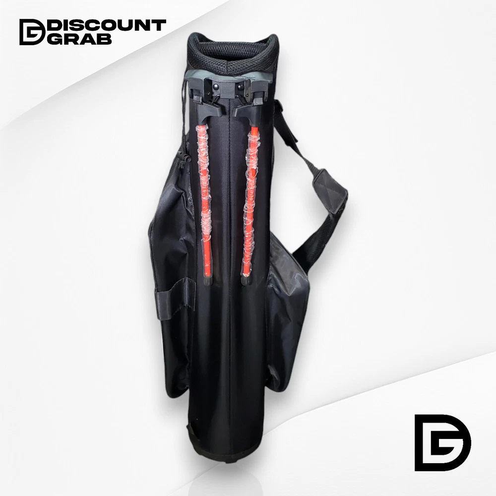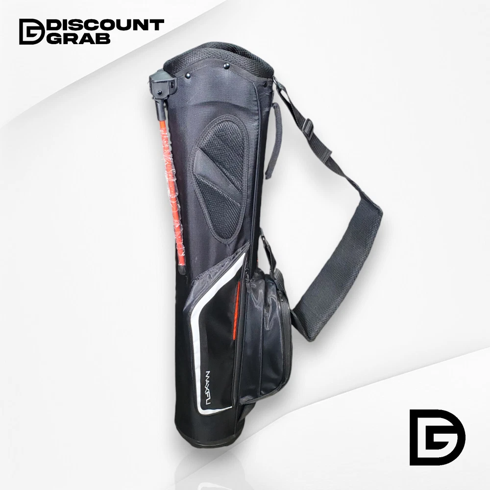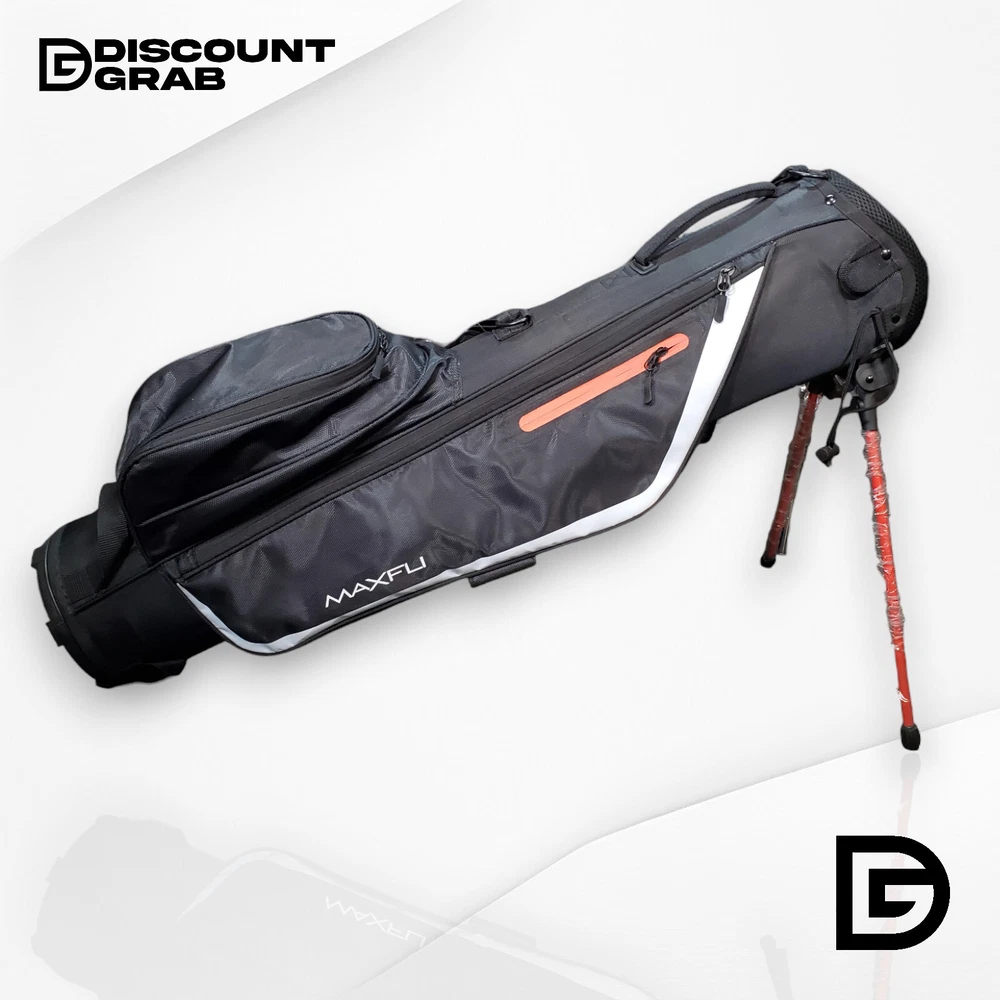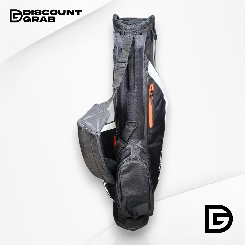 This is the listing for the Maxfli Sunday 3-Way Stand Golf Bag, original tags not attached, stand legs factory wrapped (see photos) - brand: Maxfli - model: Sunday 3-Way Stand - color: black with white details - type: lightweight stand bag specifications: - dividers: 3-way top for club organization - pockets: multiple zippered pockets for storage - weight: super lightweight, easy to carry - stand: automatic pop-out legs - strap: padded shoulder strap for comfort - material: durable and weather-resistant - handle: easy grab handle for quick lifting