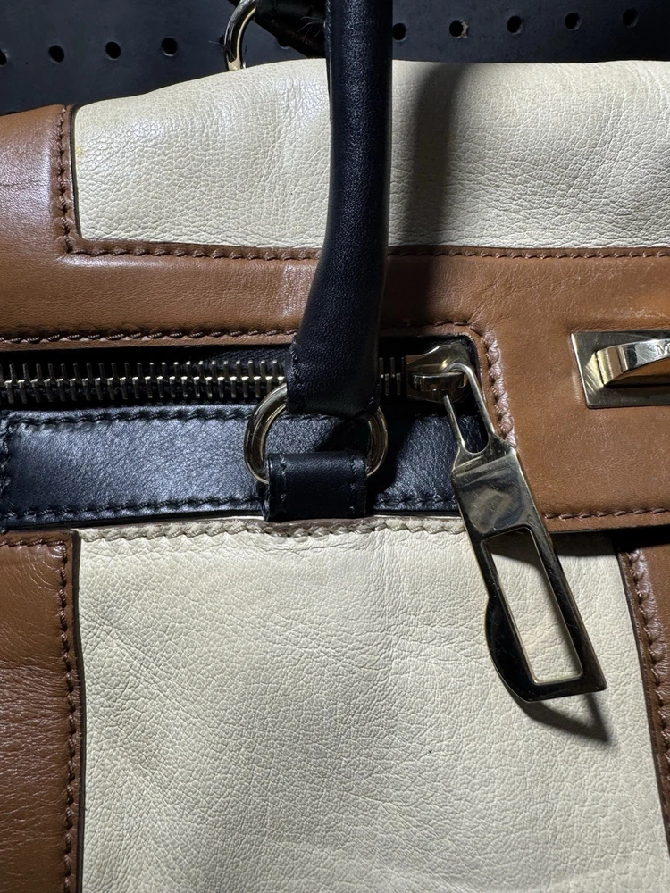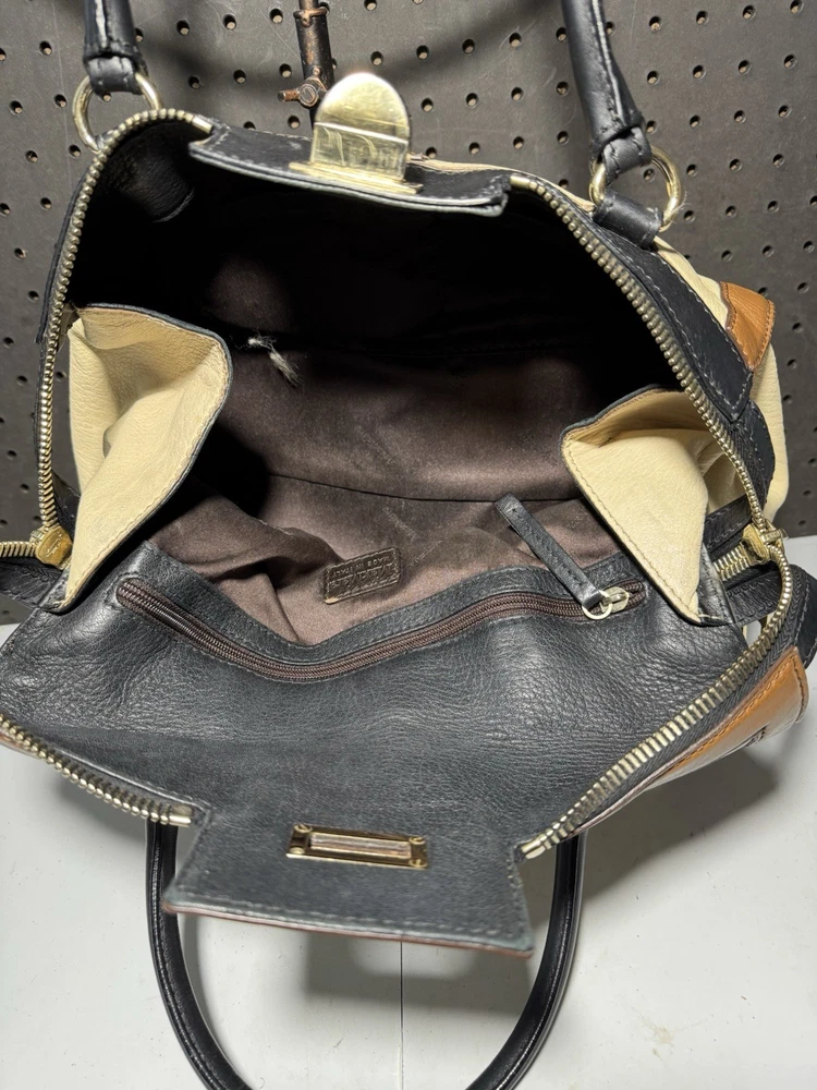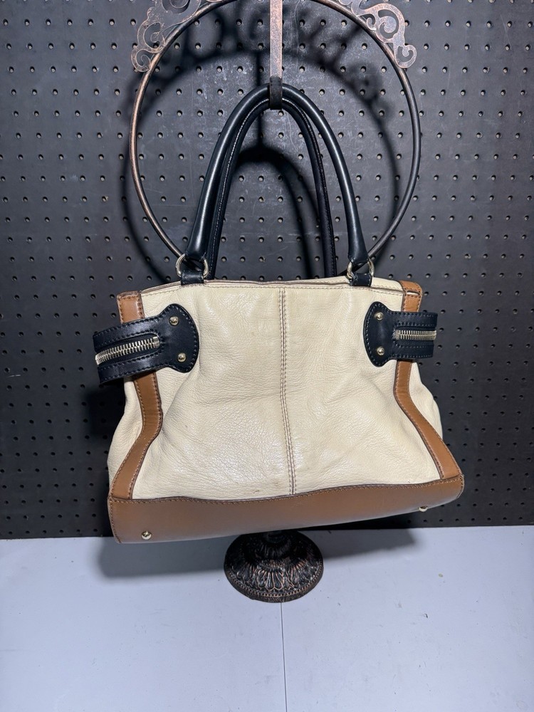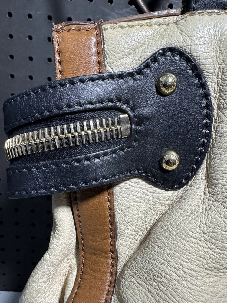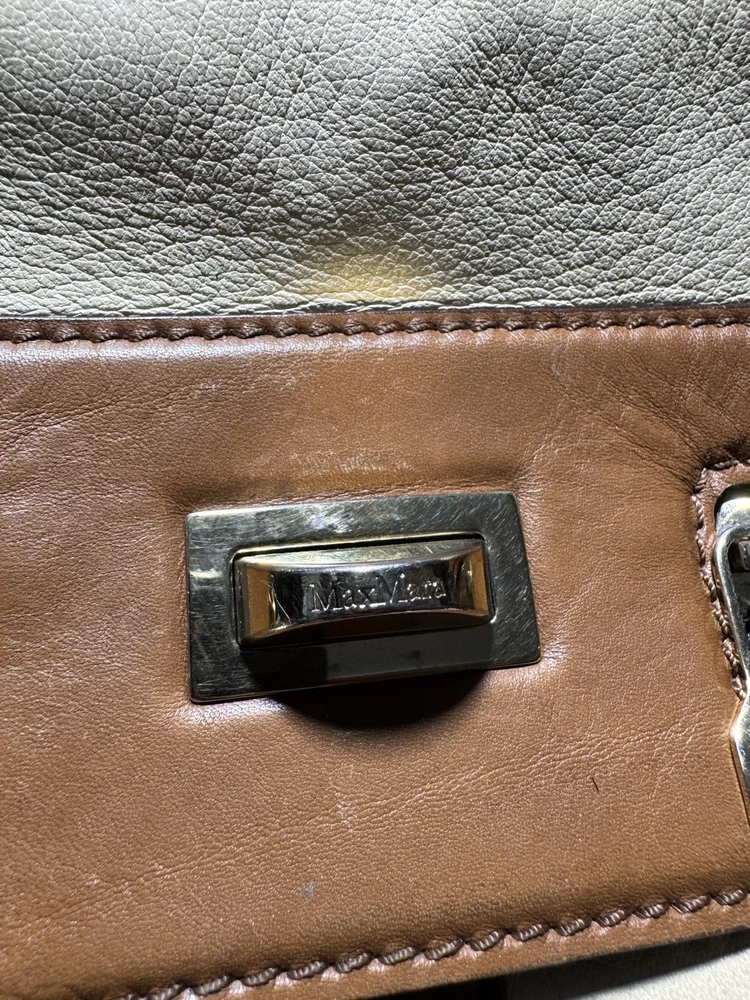 Crafted with precision, the Maxmara Margo Handbag is a testament to Italian craftsmanship, offering a blend of functionality and elegance. The bag features a durable leather exterior in a versatile beige hue, complemented by a sleek black leather lining. Its medium size, measuring 13 inches in width and 9 inches in height with a depth of 7 inches, makes it spacious enough to carry your daily essentials with ease. Attention to detail is evident in the bag's design, which includes a secure zip closure, gold hardware accents, and a comfortable leather strap in black, ensuring both style and practicality. The Maxmara Margo is an ideal accessory for those who appreciate a touch of luxury and a colorful theme, all while enjoying the quality and reputation of the Max Mara brand.