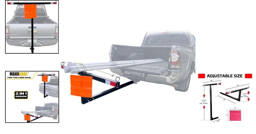 Maxxhaul 70229 Truck Bed Extender - 350 lb Capacity, Adjustable Height ‹ › ‹ › ‹ › ‹ › ‹ › ‹ › ‹ › ‹ › ‹ › ‹ › Truck Bed Extender -350 lb Capacity -Instantly extends your vehicle's horizontal length by 49" -Adjustable Height for Versatility Specifications: Fits into standard 2" x 2" class III and IV hitch receivers. Adjustable bed height: 13-3/8" to 20-3/8" Adjustable roof height: 53-3/8" to 60-3/8" Heavy-duty all-steel construction. Durable black powder coat finish resists rust and corrosion. Reflective tapes for enhanced visibility and safety. Welded loops for tying down loads securely. Features: Easily extends your vehicle's loading space by 49 inches. Adjustable height for accommodating various loads. Sturdy construction, capable of supporting up to 350 lbs. Designed for versatility, fitting pick-up trucks, SUVs, vans, and more. Reflective materials ensure high visibility in low-light conditions. Why Choose Our Truck Bed Extender? Are you seeking a practical solution to maximize your vehicle's carrying capacity? Look no further than our Truck Bed Extender. Crafted from heavy-duty steel and coated for long-lasting durability, this extender not only enhances your hauling capabilities but also ensures safety with its reflective tapes and welded tie-down loops. With adjustable heights and a generous weight capacity, it effortlessly adapts to your loading needs. Whether you're transporting lumber, kayaks, or other large items, this extender will become an indispensable part of your journey. Elevate your transportation experience—get your Truck Bed Extender today and embrace the freedom of hassle-free hauling! Shipping Free & Fast Shipping - We offer free shipping to most of the USA with a normal delivery time of 3-7 days. However, due to the current situation, additional delivery time (up to 3 weeks) may be required for some items. Alternative Carriers - We may use alternative carriers (e.g. USPS, FedEx, UPS, etc.) to ensure your package arrives safely and on time. Due to the use of multiple carriers, we are unable to provide a tracking number automatically. Handling Time - Orders are processed and shipped within 1-2 business days of receiving cleared payment. Shipping Restrictions - Shipping to Alaska, Hawaii, Puerto Rico, Guam, and other US territories may incur shipping charges or delivery restrictions. Please contact us before ordering, or your order can be refunded/cancelled. State Restrictions - There may be restrictions based on your state of purchase. For example, certain items may not be shipped to California due to state regulations. Contact for Tracking Updates - If you require tracking updates or have any concerns about the delivery of your order, please feel free to contact us, and we will be happy to assist you. Return 30-Day Hassle-Free Returns - We want you to be completely satisfied with your purchase. If you are not, you can return the item within 30 days of receiving it for a full refund or exchange. Easy Return Process - To start a return, simply contact us and we will provide you with a prepaid return shipping label and detailed instructions. Restocking Fee - There are no restocking fees for returns. However, the buyer is responsible for return shipping costs if the return is not due to a seller's error. Refund Processing Time - Refunds will be processed within 5 business days of receiving the returned item in its condition. Payment We accept all major credit cards, PayPal, and Apple Pay for your convenience. Your payment information is secure and encrypted to ensure a safe and seamless transaction. Please complete your payment within 3 days of purchase to avoid any delays in shipping. Feedback Your feedback is extremely important to us. We strive to provide the best products and customer service possible. If you are satisfied with your purchase, please take a moment to leave us a positive review. If you have any concerns or issues with your order, please contact us before leaving negative feedback. We are committed to resolving any problems and ensuring your satisfaction. Contact Us If you have any questions or concerns, please feel free to out to our customer support team. You can contact us through the eBay messaging system. We are available Monday to Friday, 9:00 am to 5:00 pm EST, and we will do our best to respond to your inquiry within 24 hours. Buy it now and enjoy a pleasant shopping experience! Item Height: Truck Bed Extender Item Length: Truck Bed Extender Item Weight: 14.51 kg Item Width: Truck Bed Extender Features: Adjustable,Reflective Tapes,Heavy Duty,Welded Loops Placement on Vehicle: Rear Attachment Type: Bolt-On,Hitch Finish: Powder-Coated Items Included: Mounting Hardware,70229 Material: Alloy Steel Type: Bed Extender Maximum Weight Capacity: 350 lb Color: Black