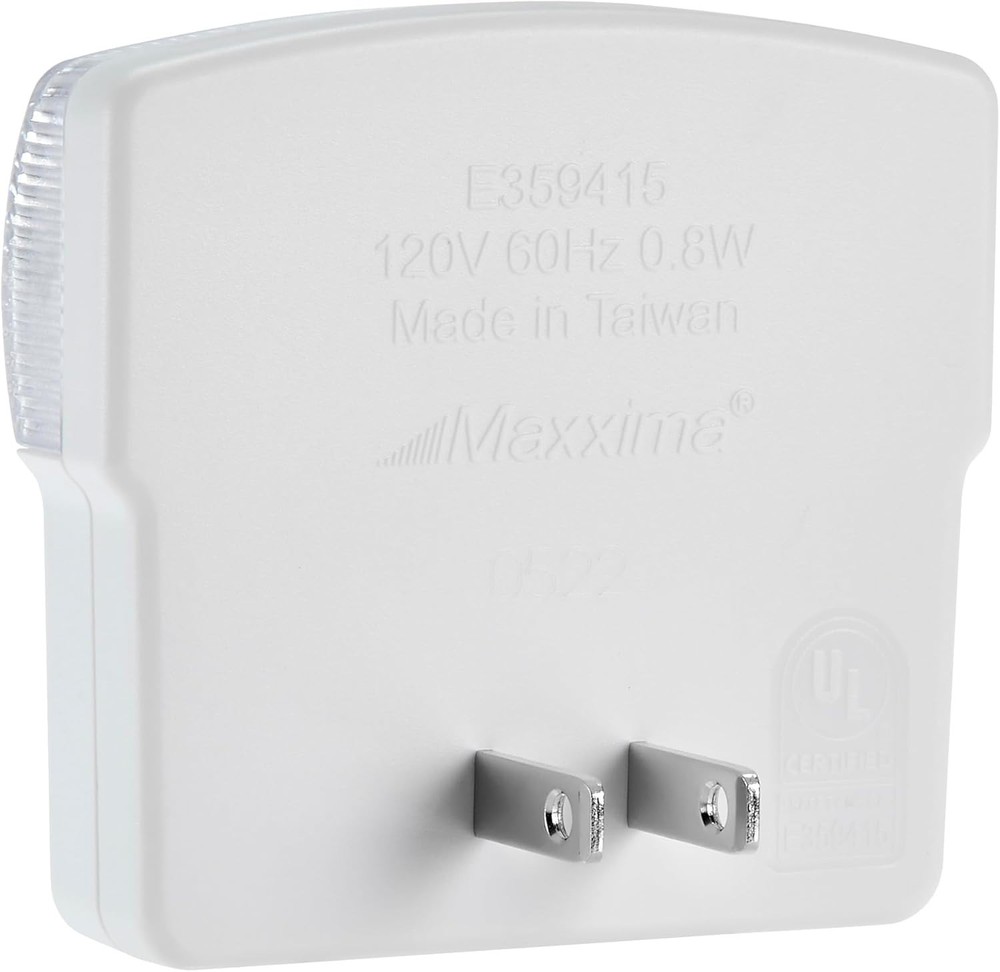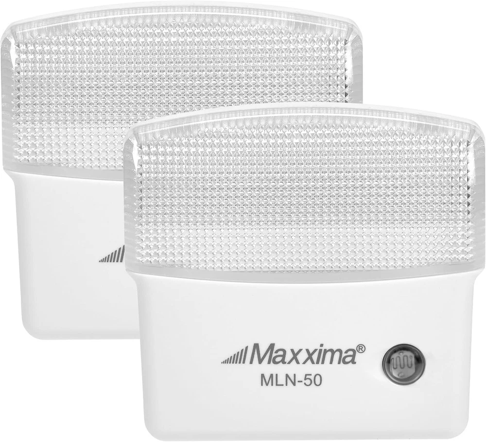 Maxxima LED Night Light with Dusk to Dawn Sensor - Featuring 25 Lumens, Plug in, Dawn To Dusk Sensor So Light Only Activates In Darkness 5 Super Bright White LEDs - 25 Lumens of light output No Bulb Replacement With Energy Efficient LEDs Perfect for Bathrooms, Basement, Hallway, Laundry Room, Stairwells, Etc Comes in Pack of 2, UL Approved