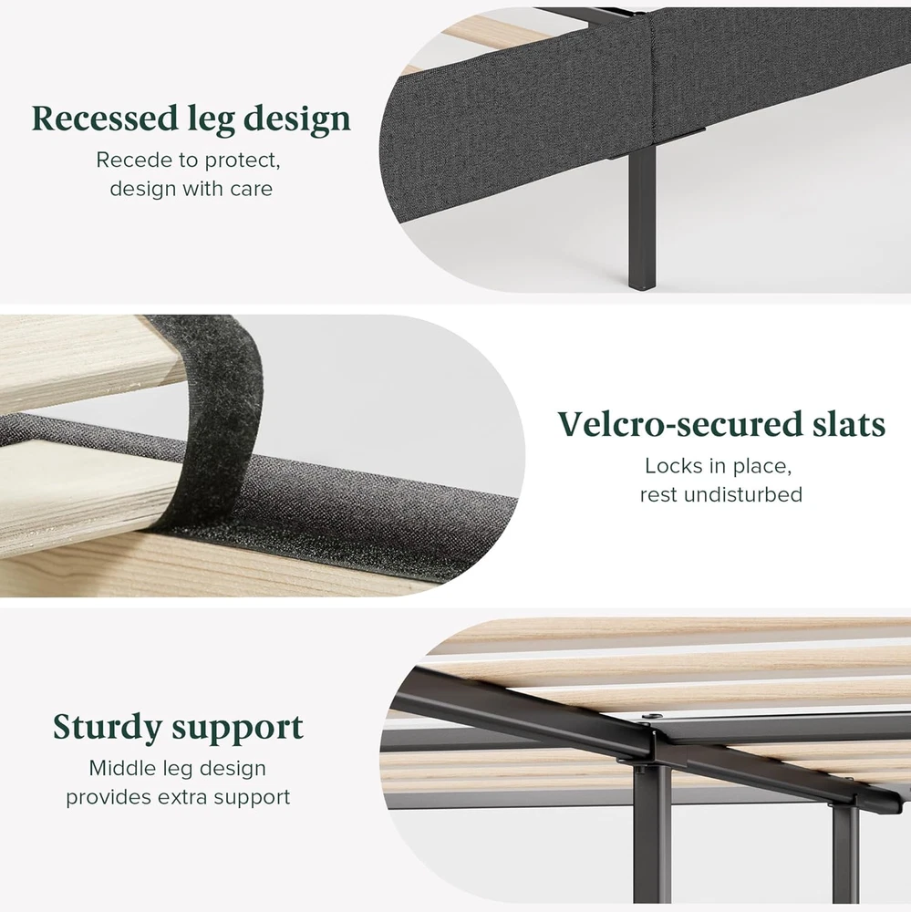 Store New Arrivals Add to Favorite View Feedback Contact Full Maya Upholstered Bed Frame with Asymmetric Headboard, Durable Wooden Slats, Sturdy Framework, Noise Free Sleep, No Box Spring Needed, Easy Assembly, Eco Friendly Packaging, Dark Grey Description Item model number ZU-FPPOP4OC-12F Style Modern Geometric Country of Origin China Material Polyester, Plywood, Foam, Steel Style Modern Geometric Compatible With Mattress Size Full Assembly Required Yes Batteries required No Product Dimensions 77.2"L x 56.9"W x 42"H Maximum Weight Recommendation 700 Pounds Furniture Finish Dark Grey Age Range (Description) Adult Finish Type Unfinished Included Components Instruction Sheet, Headboard, Foundation, Slat Fabric Type Polyester Upholstery, Hd Foam, Wooden Slats, and Durable Steel Item Weight 58.9 pounds Ground To Item Distance 6.5 Inches Special Feature Noise-free, Easy-assembly, All tools included, Strong and durable Color Dark Grey Form Factor Platform Bed Global Trade Identification Number 00841550368079 Finish types Unfinished Size Full Polyester Upholstery, Hd Foam, Wooden Slats, and Durable Steel MODERN LOOK, CLASSIC COMFORT – Maya's plush headboard with sleek asymmetric paneling adds a fresh, modern vibe and creates a luxurious nook for relaxation DURABLY BUILT - Built to last you for the long haul so you can rest easy night after night EASY ASSEMBLY - All parts, tools and instructions are included for super simple setup in less than an hour NO BOX SPRING NEEDED – Ultra-durable and made to last, this bed frame extends the life of your latex, memory foam, or spring mattress without the need for a box spring Make a statement with the Maya Upholstered Platform Bed featuring a beautiful asymmetric design. Its soft grey upholstery, adorned with subtly eclectic stitching, promises to elevate your bedroom's aesthetic to new heights. Lean back against a comfy headboard and enjoy your favorite book or binging your favorite show. Built to last, Maya’s beautiful frame is reinforced with strong steel for night after night of noise-free sleep. Its platform features sturdy wooden slats, no box spring needed, and helps extends the life of any mattress. Need another reason to relax? Your new bed comes neatly packed in one box designed for a smaller carbon footprint with easy assembly instructions and a worry-free warranty. ABOUT US We offer the best prices around on high quality products. Our E-store includes media such as books, movies, music and games while offering electronics, toys, sporting apparel, clothing, tools, general home, garden items and more. SHIPPING We are always working hard to ensure your package arrives as soon as possible. Please understand that some factors like weather, high postal traffic, and the performance of shipping companies are outside of our control. We offer free shipping to the lower 48 states and ship within 2 business days of payment, usually sooner. We do not accept P.O. Boxes. Please provide a physical address. For shipping outside of the continental USA, we only use eBay's Global Shipping Program.The item is shipped to KY and then sent to the rest of the world. International customers are responsible for all duties and taxes. Continue to check out in order to calculate costs for shipping the item to your country. Messages regarding eBay's Global Shipping Program MUST be directed at eBay EXCLUSIVELY. RETURNS We offer a 30-Day Return Policy on items which you are not completely satisfied with. You have the option for a full-refund or an exchange of the item. No returns are available on items shipped outside of the USA. PAYMENT We accept PayPal. CONTACT US This page content is yet to come Please ad us to your favorite seller and visit again later Thank You CUSTOMER SATISFACTION We try our very best to make sure every customer is completely satisfied. If there's a problem, message us! We're happy to help.