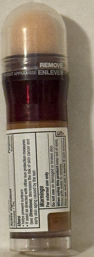 Maybelline Instant Age Rewind Eraser Treatment Foundation Makeup, SPF 20. Shade 355. 0.68 fl oz This moisturizing foundation with SPF 20 covers uneven skin tone, fine lines, and wrinkles for a natural look that lasts. The blurring built-in applicator erases lines, while the sponge tip glides on ultra-smooth for a natural finish that won't settle into fine lines and wrinkles. Formulated with moisturizing Pro-Vitamin B5 and SPF 20, this foundation delivers all-day comfort. Non-comedogenic and suitable for sensitive skin. New sealed product.