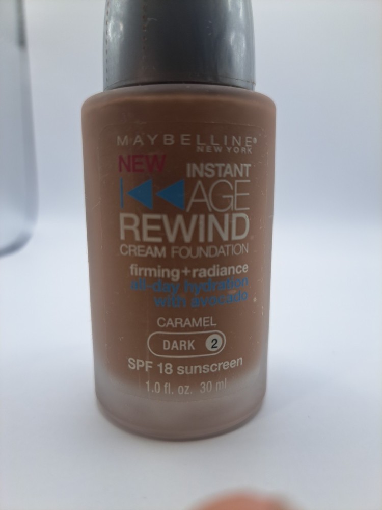 UPC:041554529937Type:FoundationFormulation:LiquidSpecial Properties:FIRMINGShade:CaramelBrand:Maybelline New YorkCountry/Region of Manufacture:United StatesEffect:age rewindForm:LiquidSize:Full SizeMPN:Caramel (Dark-2) Pump Cap With AVOCADO.Model:INSTANT AGE REWINDSize Type:full sizegtin13:041554529937Features:PumpExpiration Date:NONE.Country of Manufacture:United StatesSkin Type:All Skin Types