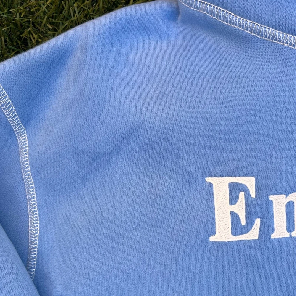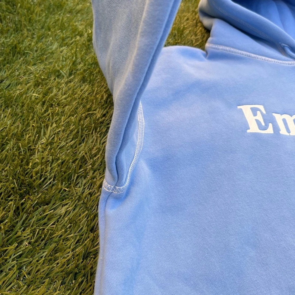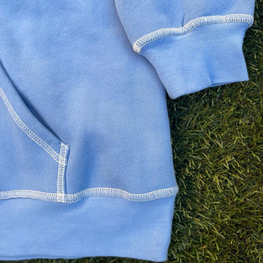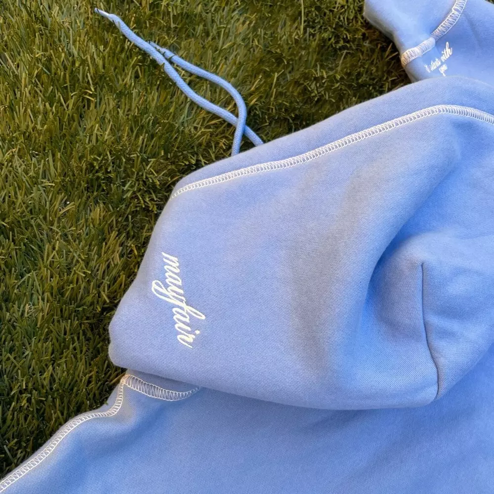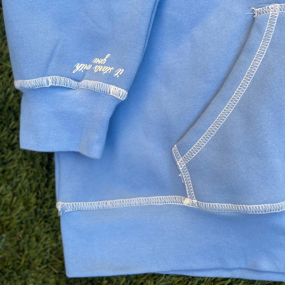 Pre-Owned pull over hoodie sweatshirt by Mayfair Group Style is the Empathy Always Hoodie Color is Baby Blue and white Size extra small, oversized unisex fit Measurements: Pit to Pit 25 inches Length 27.5 inches Arm Length Inseam 20 inches Light blue baby blue Vintage Y2K Hiphop Streetwear vibes, from this on tread unisex brand that supports mental health and self care. Universal positive messaging, with on-tread minimalist styling. Thick and warm, this mid weight sweatshirt is perfect for lazy days in the winter, or a cozy school outfit with its oversized relaxed fit.