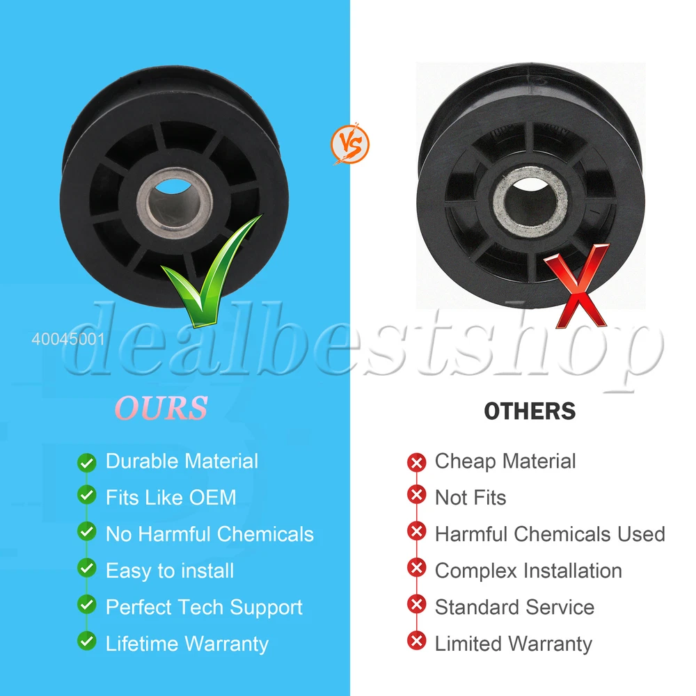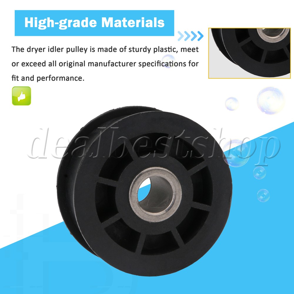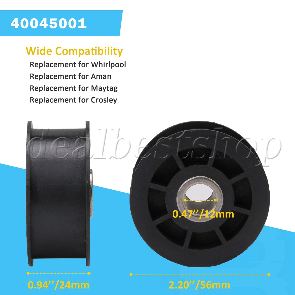 Features: 1.Every product has a unique Manufacturing Part Number label on the inner package that proves it has been qualified,which include Part Number,Model Number and inspection date information; 2.If you have any questions about the item,please provide us the Manufacturing Part Number for checking,your profits will be guaranteed. 3.Made of Metal and plastic,durable and easy to use. 4.Replacement for Whirlpool,Replacement for Maytag,Replacement for Kitche. 5.Replacement for the replacement number 40045001 WP40045001 PS2040929. Note: Not Replacement for Amana LW7503W2 Specifications: Material:Plastic & Metal Color:Black,Silver Brand name: Unbranded Size:5.6x2.4cm/2.2x0.94Inch(ODxT) Weight:64 g Package include: 1x Idler Pulley Wheel On Jan 6, 2025 at 00:32:03 PST, seller added the following information: