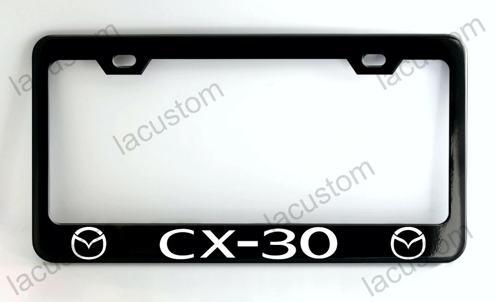 MAZDA CX-30 BLACK LICENSE PLATE FRAME !!! CUSTOM MADE OF POWDER COATED METAL THESE FRAMES ARE STANDARD, THEY FIT ALL LICENSE PLATES WITH U.S. & CANADA NUMBERS. YOU CAN ALSO CUSTOMIZE YOUR OWN FRAME. YOU CAN SAY ANYTHING YOU WANT. THANK YOU FOR LOOKING AND PLEASE EMAIL ME WITH ANY QUESTIONS. BID WITH CONFIDENCE!!!