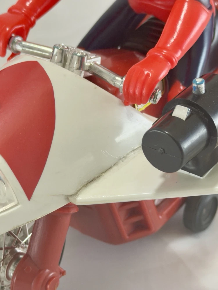 Mazinger Tetsuya Jet Bike Right Deluxe Jumbo Pla Mazinga Cycle Popy Mattel Grail The description of this item has been automatically translated. If you have any questions, please feel free to contact us. MAZINGER TETSUYA JET BIKE DX DELUXE JUMBO PLA MAZINGA CYCLE POPY MATTEL GRAIL Used loose character vehicle. No original packaging. The two fists are excellently crafted reproductions provided free with purchase. Vehicle in excellent condition with signs of wear. Original stickers except the red one on the dashboard dome. It is reported that the two wings are broken and are have been reglued as shown in the photo. Functioning punch launcher systems. Very rare jumbo right version. Length approx. 24cm ~ Material: plastic. The first photo is a display suggestion rendering. For the actual condition of the item, please check the other photos. IMPORTANT NOTICE FOR INTERNATIONAL BUYERS (NON-EU) We are a seller based in Italy (European Union). Any customs duties, import taxes, VAT, or clearance fees required by your country are solely the buyer's responsibility. These charges are not included in the item price or shipping cost. Please purchase only if you are aware of and willing to pay any applicable import charges required by your country. By completing your purchase, you acknowledge and accept these terms. Item for adult collectors. Refer to pictures, ask for more information. For international shipments and outside Italy, before purchasing, please contact us first in order to accurately establish the amount. We thank you for choosing us. If you have not received your item within the expected timeframe, please contact us before opening a dispute. We will be happy to assist you and find a mutually satisfactory solution. We kindly ask you to wait for our response before proceeding with any complaints. Your satisfaction is our priority. Dear customer, please note that each item available in our store is equipped with a unique invisible identification system. This allows us to verify the authenticity of the items in the event of a return. Any inconsistency between the item sold and the one returned will be promptly detected and reported. We thank you for your kind attention and collaboration. Battery-powered items are supplied without a battery. If payment is not made within 4 days of purchase, the item will automatically be relisted and the sale will be canceled. Our shop is located in Italy (European Union). Any customs duties or import taxes are not included in the price and are the responsibility of the buyer, according to the regulations of the destination country. MAZINGER TETSUYA JET BIKE DX DELUXE JUMBO PLA MAZINGA CYCLE POPY MATTEL GRAIL Used loose vehicle with figure. No original box included. The two fists are high-quality reproduction pieces and are included as a complimentary bonus with the purchase. Vehicle is in excellent condition with signs of wear. Original stickers are present, except for the red one on the dashboard dome. Please note that both wings were broken and have been professionally re-glued, as clearly visible in the photos. The fist-launching mechanisms are working correctly. Extremely rare Jumbo DX version. Approximate length: 24cm. Material: plastic. The first photo is a rendering for display suggestion purposes. For the actual condition of the item, please refer to the other photos. Item for adult collectors. Please refer to pictures, ask for further information. For international and out of Italy shipment please contact us before to buy in order to define exactly the costs. Combined shipping for the purchase of several items. Tracked shipping. Thank you for choosing us. Please note that delivery times may vary depending on shipping conditions. If you have not received your item by the deadline, please contact us before opening a dispute. We will be happy to assist you and find a mutually satisfactory solution. We kindly ask you to wait for our reply before proceeding with any complaints. Your satisfaction is our priority. Dear customer, please note that every item available in our shop is tagged with an exclusive invisible identification system. This allows us to verify the authenticity of the items in the event of a return. Any discrepancies between the sold item and the returned item will be promptly detected and reported. We thank you for your attention and cooperation. Battery-powered devices are supplied without batteries. If payment is not made within 4 days since purchase, the item will be automatically relisted for sale and the transaction will be canceled. Our store is located in Italy (European Union). Import duties, taxes, and customs charges are not included in the item price or shipping cost. These costs are the buyer's responsibility according to the regulations of the destination country. Dear customer, please note that each item available in our store is equipped with a unique invisible identification system. This allows us to verify the authenticity of the items in the event of a return. Any inconsistency between the item sold and the one returned will be promptly detected and reported. We thank you for your kind attention and collaboration. Thank you for choosing us. Please note that delivery times may vary depending on shipping conditions. If you have not received your item by the deadline, please contact us before opening a dispute. We will be happy to assist you and find a mutually satisfactory solution. We kindly ask you to wait for our reply before proceeding with any complaints. Your satisfaction is our priority. Dear customer, please note that every item available