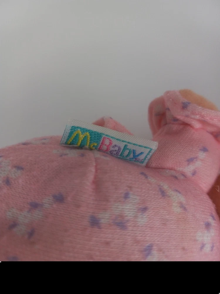 McBaby 1997 plush baby doll McDonalds toy VTG pink and purple flowers blond hair