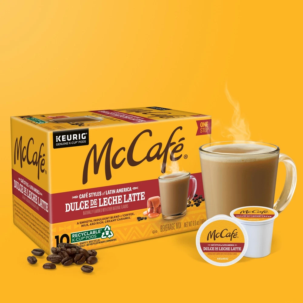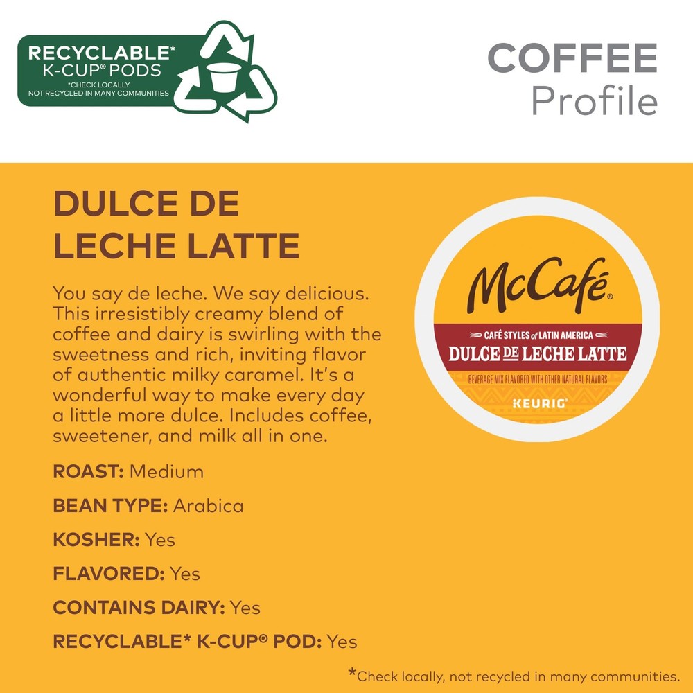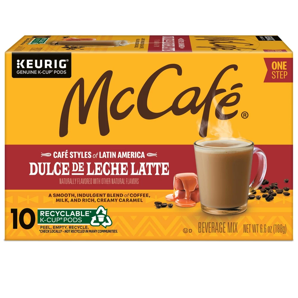 McCafé Dulce de Leche Latte, One Step Latte Single Serve Keurig K-Cup Pods, Flavored Coffee, 60-Count Box (6 Packs of 10) TASTE: This irresistibly creamy blend of coffee and dairy is swirling with the sweetness and rich, inviting flavor of authentic milky caramel. It’s a wonderful way to make every day a little more dulce CAFÉ STYLES OF LATIN AMERICA: Experience authentic taste at home with Café Styles of Latin America coffee from McCafé SUSTAINABILITY: We are committed to responsibly sourced coffee to support a healthier planet and an improved quality of life for farming communities COMPATIBILITY: Contains genuine Keurig K-Cup pods, engineered for guaranteed quality and compatibility with all Keurig single serve coffee makers RECYCLABLE* K-CUP PODS: Simple. Delicious. And recyclable. Enjoy the same great-tasting coffee you know and love, and when you’re done, just peel, empty, and recycle. *Check locally, not recycled in many communities Shipping We offer FREE shipping on all orders! We ship within Three business days of payment, usually sooner. We use a selection of shipping services such as UPS, FedEx, USPS etc. We only ship to the lower 48 states, no APO/FPO addresses or PO Boxes allowed. Local pickups and combined shipping options are not provided at this time. Return You can return a product for up to 30 days from the date you purchased it ONLY if it's in the original condition. The product cannot be used or open. Any product you return must be in the exact same condition you received it and in the original packaging. Please keep the receipt. Feedback Customer satisfaction is very important to us. If you have any problem with your order, please contact us and we will do our best to make you satisfied. Contact Us If you have any queries, please contact us via ebay. We usually respond within 24 hours on weekdays. Please visit our eBay store to check out other items for sale! Thank you for shopping at our store.