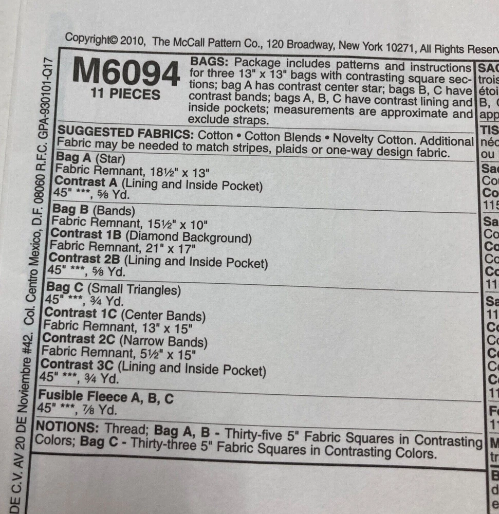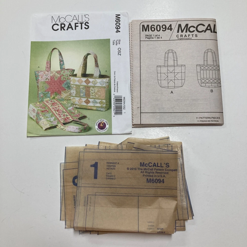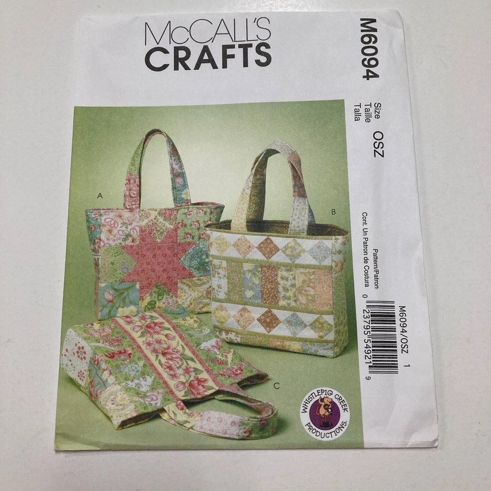 McCall's 6094 Whistlepig Creek Productions Tote Bag Quilt Designs Pattern cut All pieces included