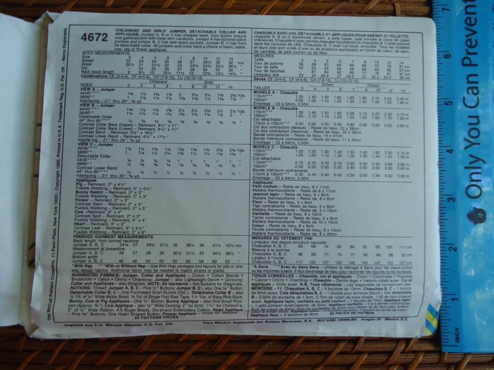 McCall's Pattern 4672 Size CJ 10-14 Childrens Jumper Collar Appliques Un Cut VTG