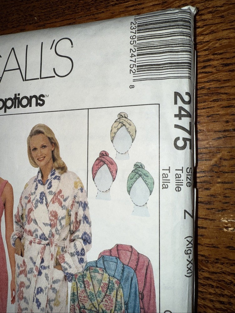 Get ready to unleash your inner fashionista with this stunning McCalls Sewing Pattern 2475. This pattern includes a Robe, Spa Wrap, Headband, and Headwrap in sizes XLG-XXL. You'll be able to create your own unique pieces that are perfect for any occasion. This pattern is uncut and ready to use, so you can start crafting right away. It's perfect for adult females who want to take their sewing skills to the next level. With this pattern, you'll be able to create beautiful and comfortable garments that are sure to impress.