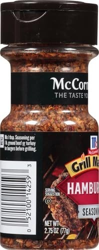 ABOUT ITEM; Epic blend of black pepper, chili pepper, onion, red bell pepper, and garlic No MSG or artificial flavors added Made with McCormick spices & herbs Perfect for burgers PREP TIP: Create bold, juicy burgers with just 1 tbsp. of our Hamburger Seasoning per 1 lb. ground beef or turkey Kosher Kosher
