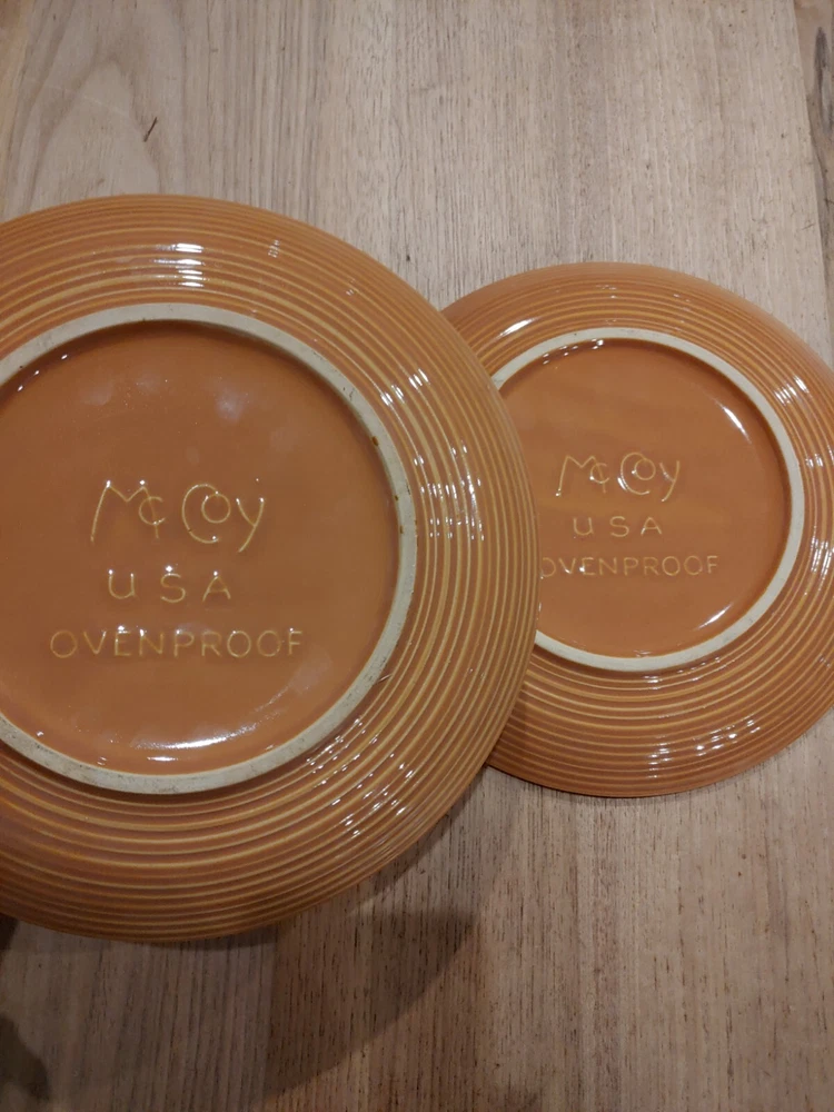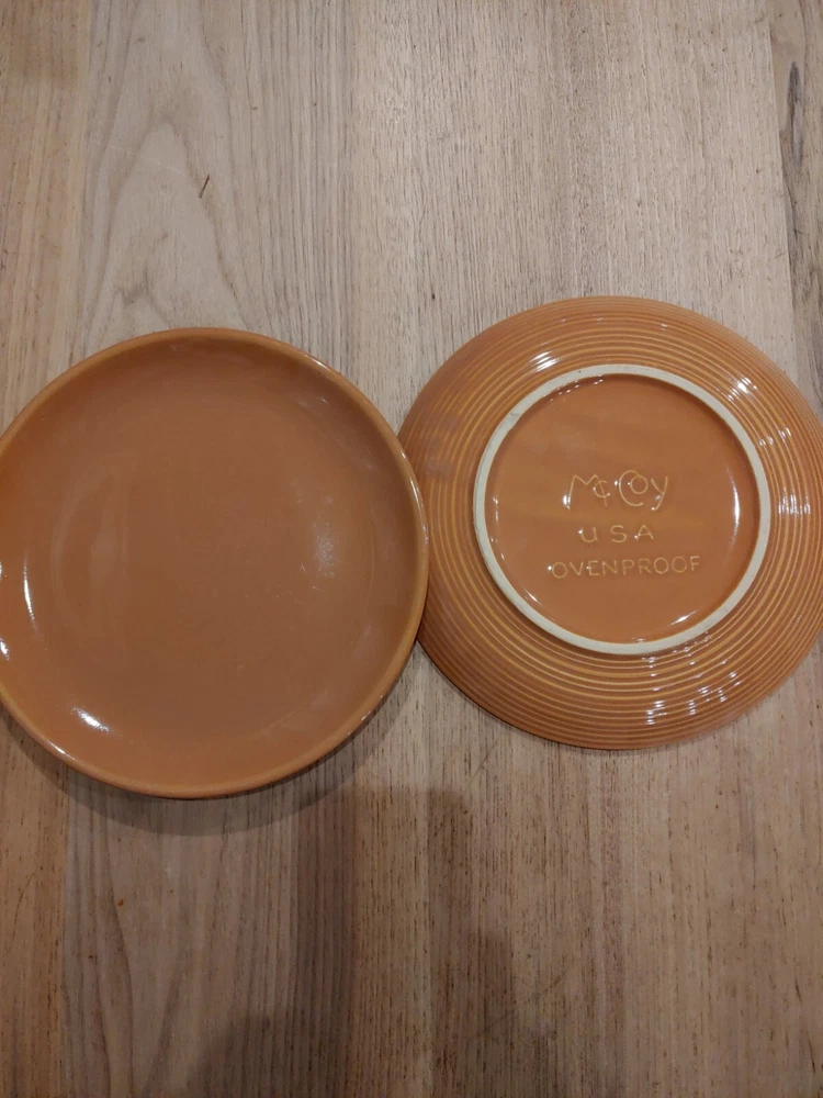 Pattern:MesaEra:Late 20th Century (1970-1999)Type:Dinner PlateProduction Technique:PotteryProduction Style:Art PotteryVintage:YesShape:RoundBrand:McCoygtin13:Does not applyCountry/Region of Manufacture:United StatesOccasion:All OccasionsMPN:Does not applyBackstamp:ImpressedOriginal/Licensed Reproduction:OriginalColor:BrownTime Period Manufactured:1970-1979Material:StonewareNumber of Items in Set:Two-PieceItem Width:10.50 inUPC:Does not applyYear Manufactured:1970Set Includes:Dinner Plate