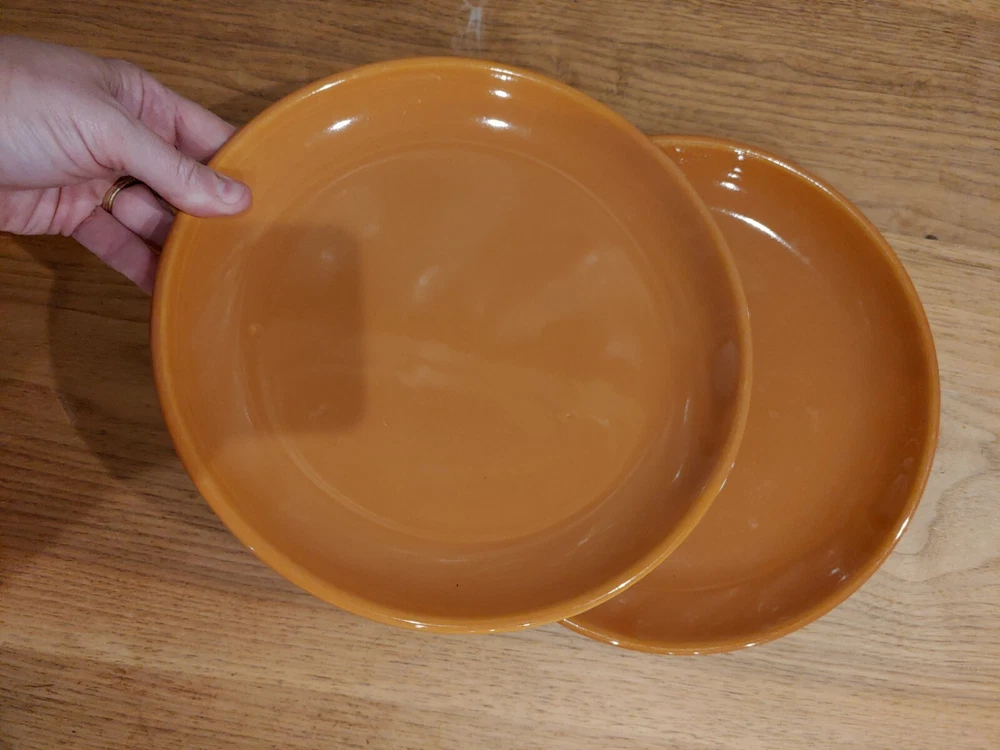 McCoy Art Pottery Tan Mesa Brown Dinner Plates 10 " USA Ovenproof MCM Dish Rare