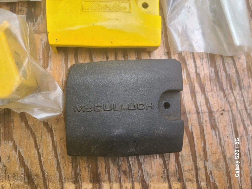 This listing is for the lot of mcculloch mini mac parts. There are covers and 31 nos bar plates. Some items have shelf wear. These parts came out of an old chainsaw shop that was cleaned out several years ago. Please feel free to ask questions, and thank you for looking..