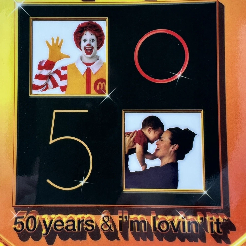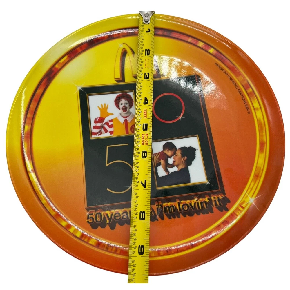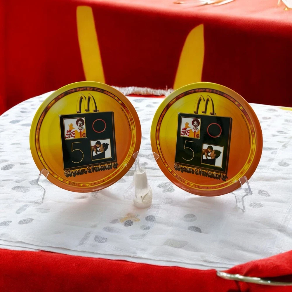 This McDonald's dinner plate is a must-have for any collector of fast food memorabilia. The vibrant yellow color and iconic logo make it a standout piece, perfect for display or use. The plate measures 9.5 inches in diameter and is made of durable plastic. Celebrate the 50th anniversary of McDonald's with this limited edition plate, featuring the classic restaurant theme. The plate is in excellent condition and is sure to be a conversation starter at your next dinner party. Add it to your collection of plates or display it on your wall for a pop of color and nostalgia.