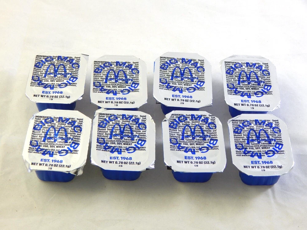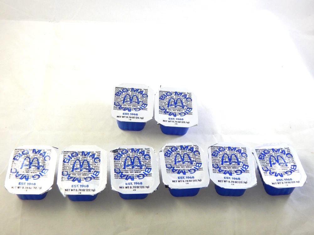 McDonalds Big Mac Sauce Packs Limited Time only. Sold Out at some Restaurants. **Collectabile** Description: 8 New McDonalds Big Mac Sauce packets. Packets can be used or collected. PLEASE look at the pictures closely to form your own opinion of items condition, I could have missed something. I have tried to explain this item the best I can. Item is new and sold as is, ask all questions before bidding. Returns are accepted within 30 Days; the item must be returned in the same new condition as when it was shipped. Payment is due within 2 days. Items are shipped within 1-2 business days. None paying bidders will be reported to eBay. I DO NOT SHIP OUT OF THE CONTINENTAL UNITED STATES. 3250